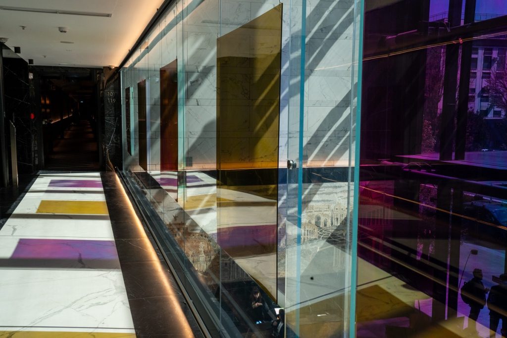 Dalle vetrate gotiche alla pellicola dicroica, la nuova luce dell'arte di Valerio D'Angelo è in mostra all’Hotel Hilton di Roma