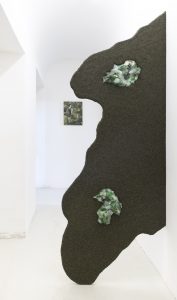 Da un lato, i lavori degli artisti scelti si adattano perfettamente agli spazi articolati di Palazzo Maccafani – spazi in realtà così caratterizzati e non neutri da arricchire ogni opera di un sapore site-specific – respirando in un loro spazio individuale. E basta dare un’occhiata all’installazione video 5’ per indurre un’assenza di Diamante, che respira degli echi e riverberi della sala cisterna, oppure alle concrezioni vetrose di Emmanuele che contraddicono, o quanto meno ostacolano, la funzione di passaggio del corridoio, o ancora al dialogo intercorrente tra il fianco boscoso dei monti e le formazioni ceramiche stranamente organiche di Mangano & van Rooy.