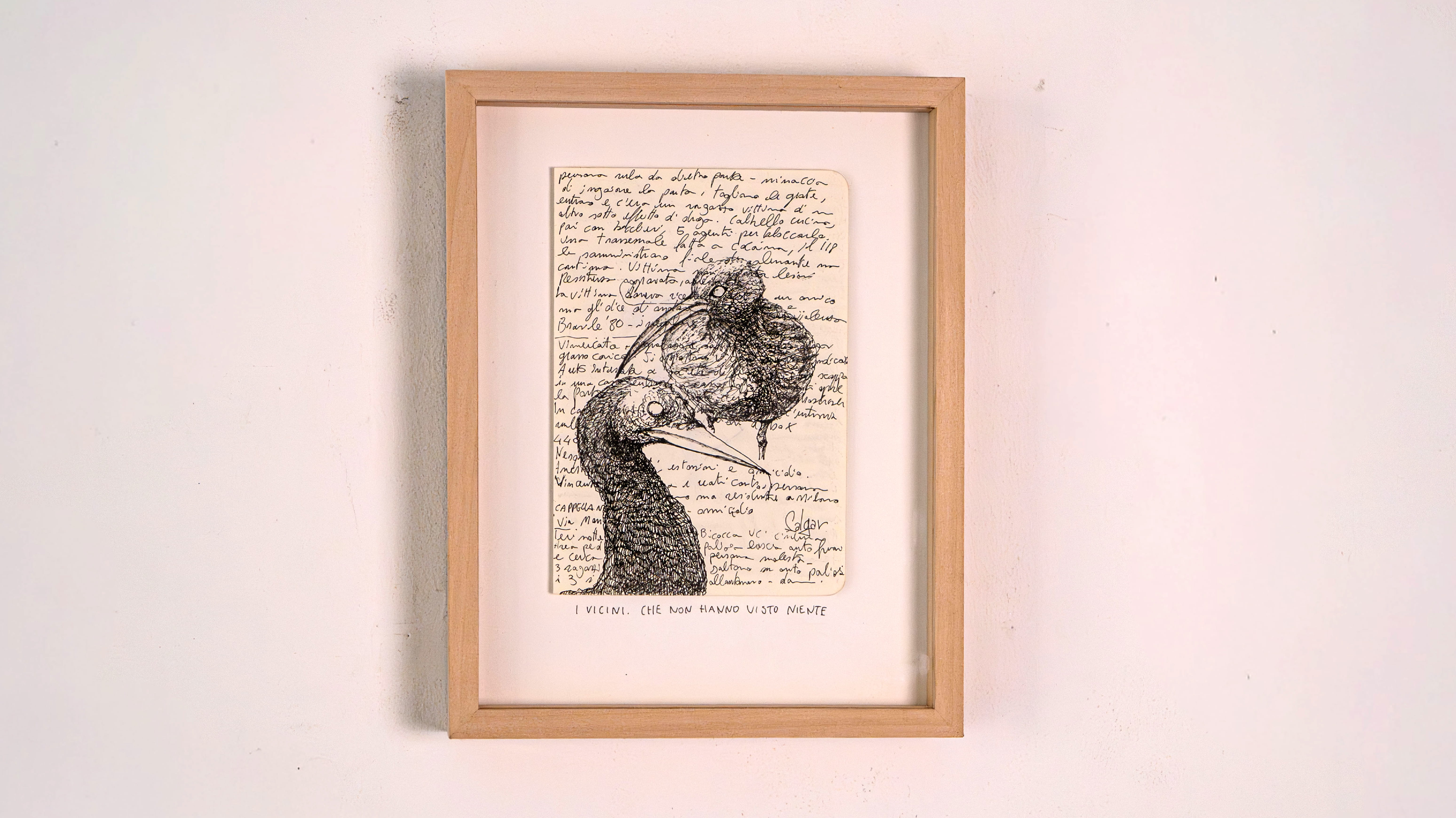I vicini. Che non hanno visto nulla, 2015, Inchiostro su carta, 10,5 x 14,8 cm, Courtesy of Salvatore Garzillo & Galleria Patricia Armocida