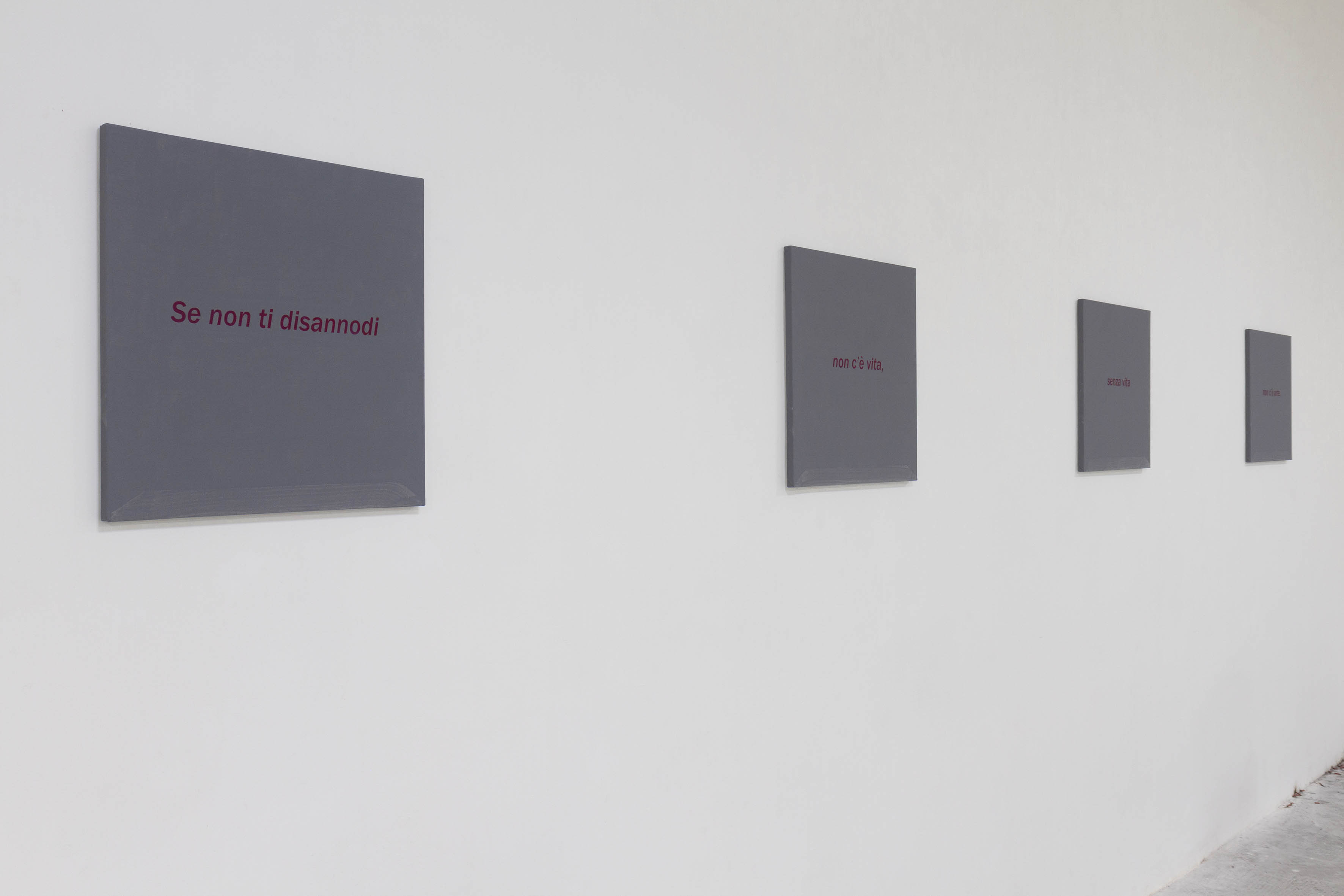Ogni artista ha risposto all’invito in maniera davvero generosa. Diverse opere, pur ideate prima della mostra, sono state realizzate per l’occasione: penso all’intervento site-specific di Sgambaro, alla monumentale installazione dei Vaste Programme, intitolata Tutto intorno a te, o alle quattro tele che compongono Se non ti disannodi di Italo Zuffi.