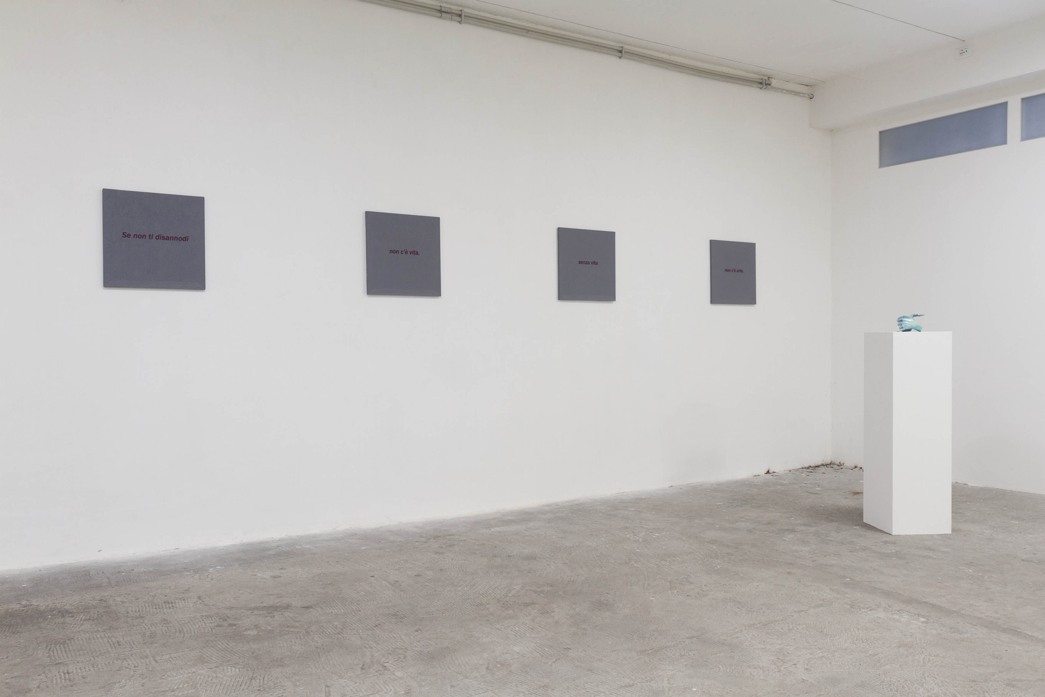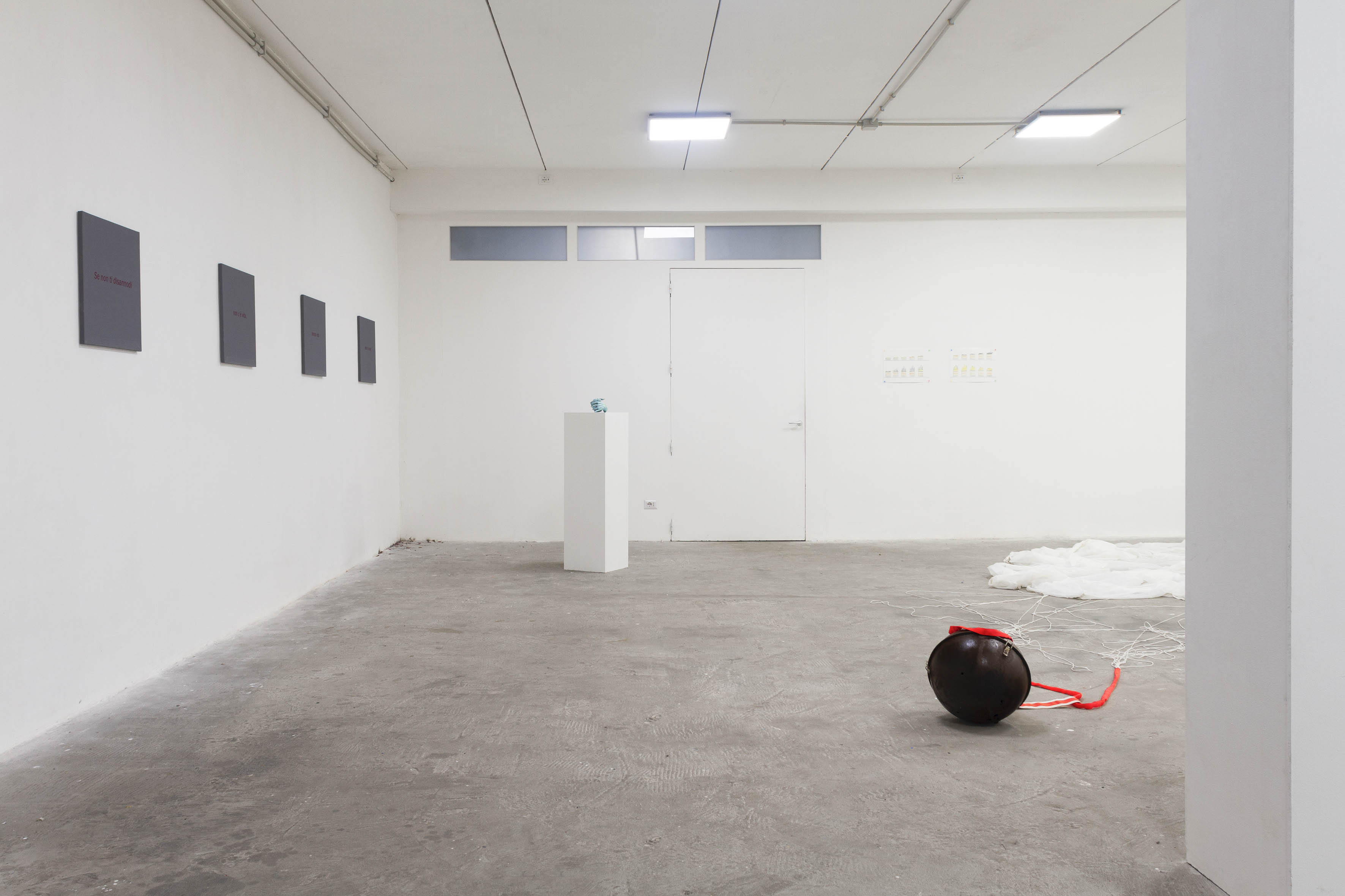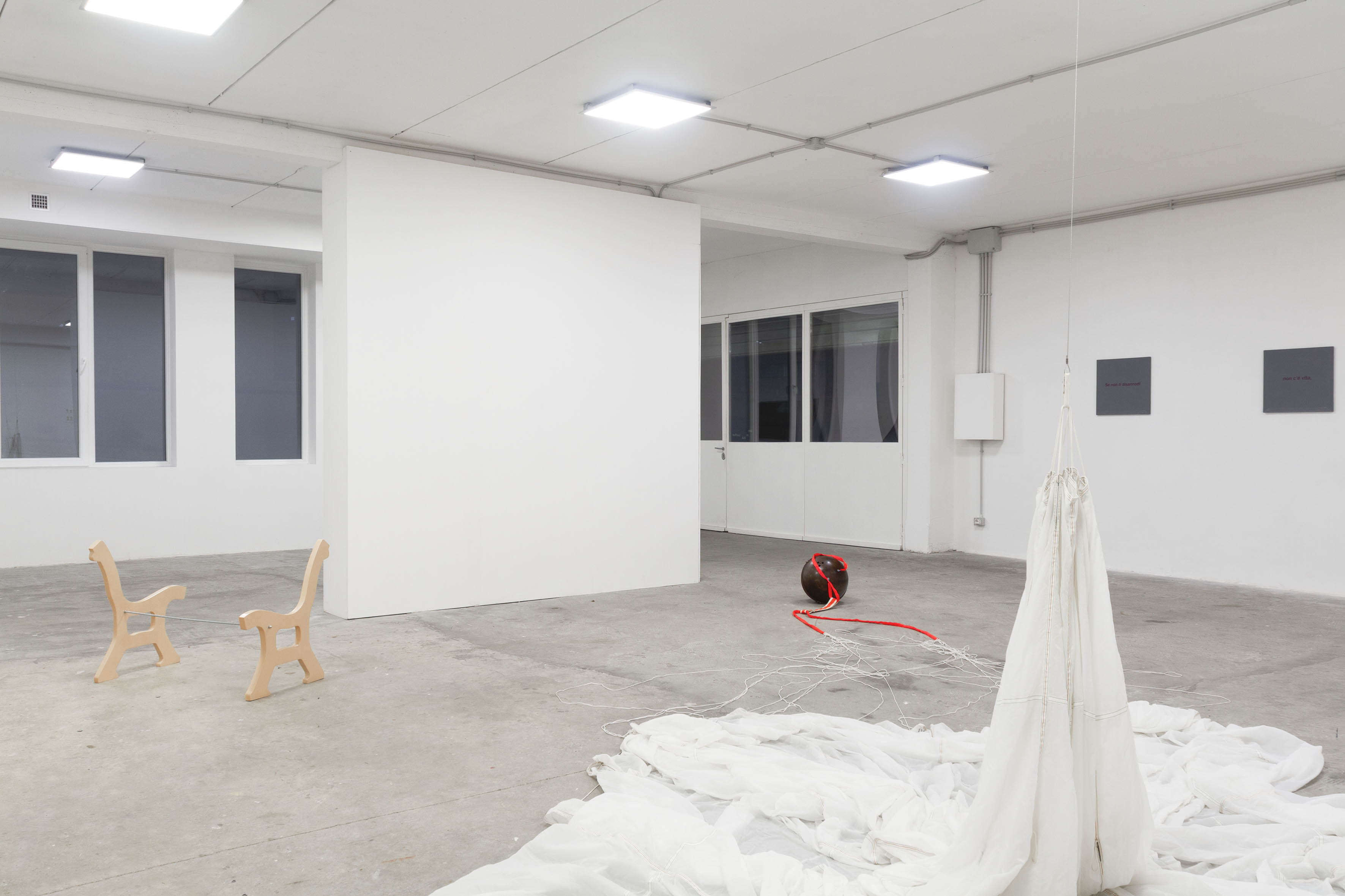 A Spazio In Situ, invece, siamo tutti più o meno coetanei. Il fatto che sia l’unico membro con un profilo curatoriale, come sottolineavi nella domanda precedente, è una grande opportunità: il contatto quotidiano con gli artisti ti obbliga a superare i limiti di un approccio prettamente teorico. È risultato subito chiaro, per esempio, durante l’allestimento della mostra.