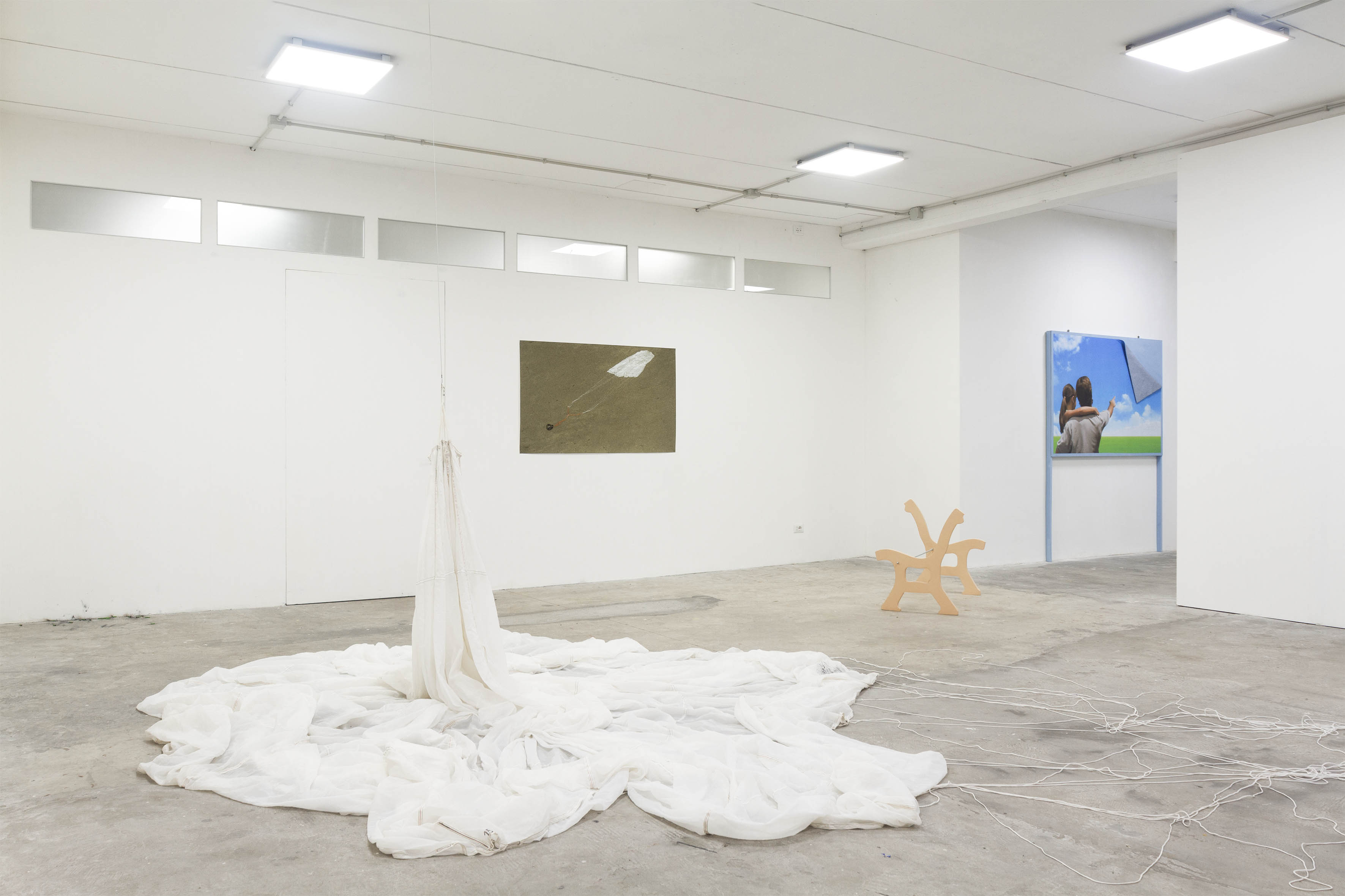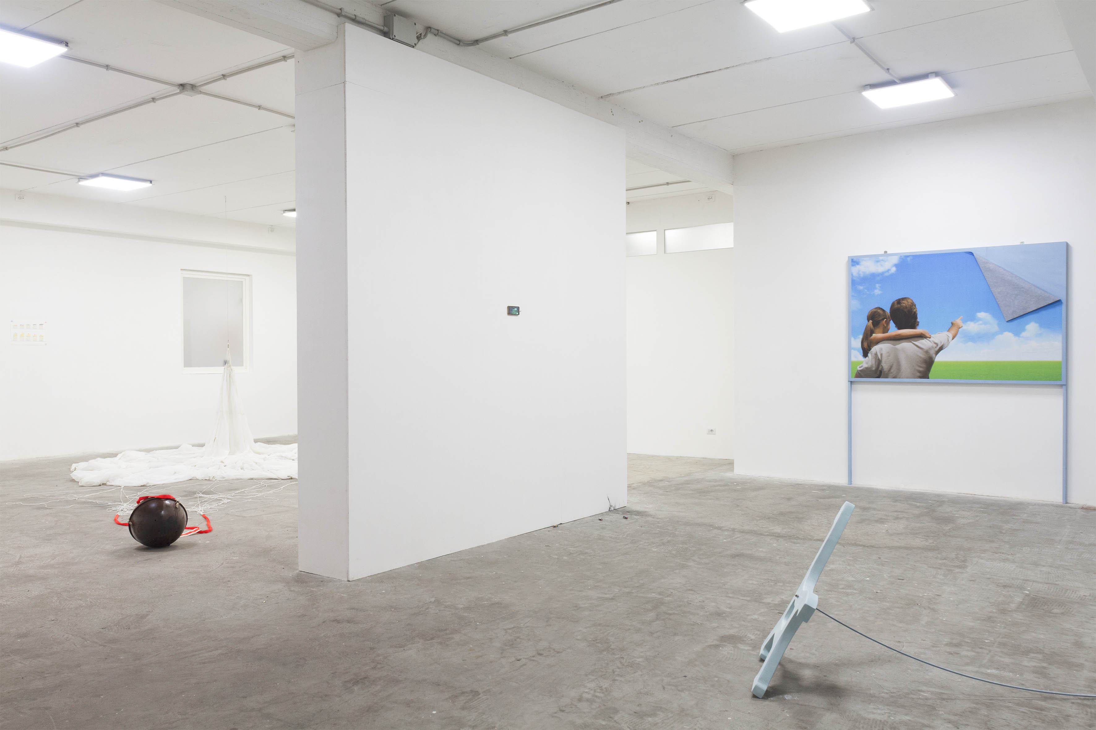 Se, per esempio, Virale di Benedetta Fioravanti riflette sulla pervasività e la familiarità delle immagini violente, When In Doubt Land Long di Giorgia Accorsi fa atterrare un assurdo paracadute nello spazio espositivo. Allo stesso modo, se i petardi di Fischia e verrò da te di Davide Sgambaro interrogano sull’esaurimento e la frustrazione generati da un sistema economico fondato sull’iperproduttività e la “performatività”, le opere di Federico Tosi raccontano futuri distopici formalmente e cromaticamente seducenti.