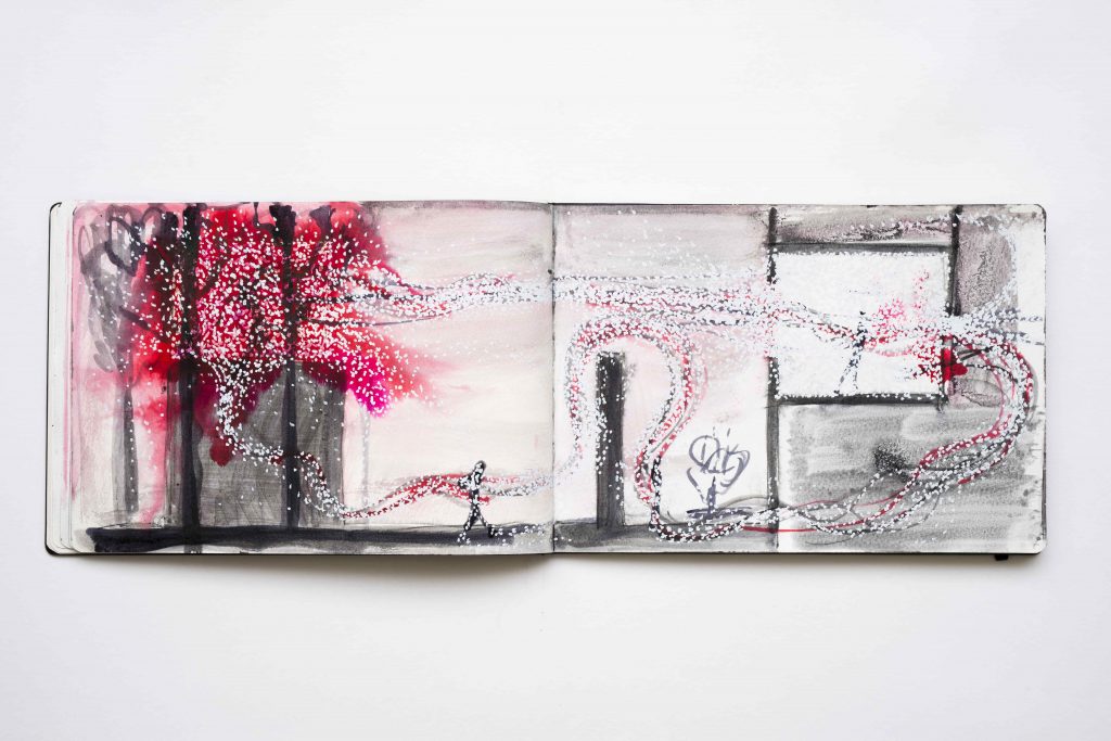 Proprio per questo l’opera che ho realizzato per Roma e che in seguito prenderà forma definitiva, è soprattutto un inno alla libertà. Una barriera che taglia in due la cavea dell’Auditorium ma che assomiglia di più ad un’architettura ariosa da attraversare, un luogo in cui fermarsi, affacciarsi, guardare, incontrare altri, insomma l’opposto di un muro concreto, qualcosa che costituisce maggiormente un transito, un rito di passaggio per muoversi di qua e di la scoprendo che oltre che attraversare si viene attraversati ogni volta che ci muoviamo nello spazio. Questo fattore che richiama ‹‹i fenomeni cosmici›› come li chiama Gramsci nella lettera citata sono alla base di questo lavoro, ecco cosa dice a questo proposito nella lettera ‹‹… il ciclo delle stagioni, legato ai solstizii e agli equinozii, lo sento come carne della mia carne …›› e conclude facendo riaffiorare la questione del famoso ottimismo della volontà in maniera del tutto poetica ‹‹… la rosa è viva e fiorirà certamente, perché il caldo prepara il gelo e sotto la neve palpitano già le prime violette …››.