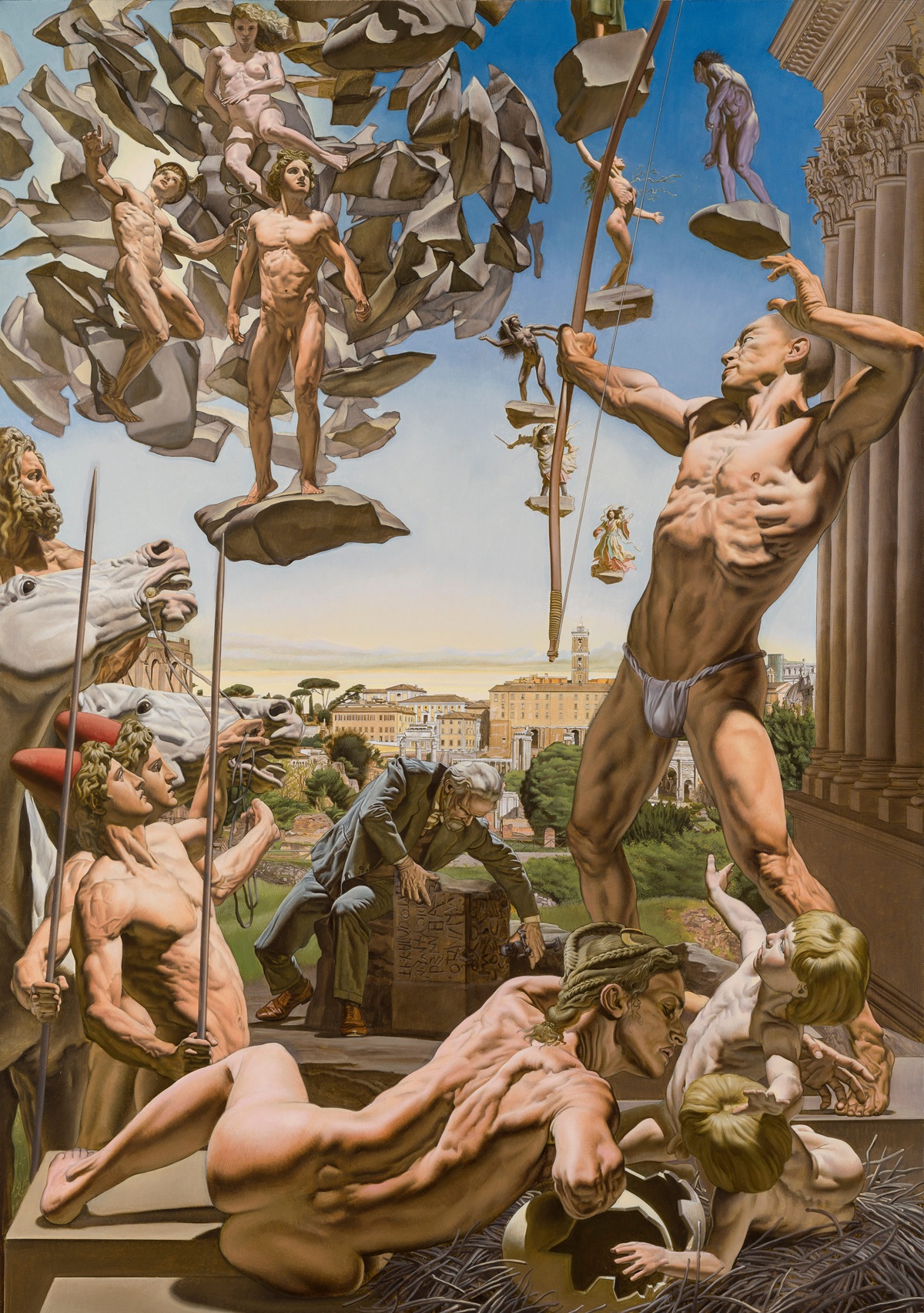 «Le mie influenze più determinanti sono stati gli artisti del Rinascimento e della Grecia classica, ma quando avevo circa quattordici anni, nella biblioteca del paese dove sono cresciuto in provincia di Vicenza, vidi nelle riviste d’arte che arrivavano lì le opere dei così detti Anacronisti italiani: Carlo Maria Mariani (che non si considerava tale), Stefano Di Stasio, Carlo Bertocci, Orlando Fiore (pittore molto interessante anche se meno noto, morto prematuramente nell’88 di HIV), e tanti altri. Non sapevo bene come prenderli, mi lasciavano interdetto perché vedevo in loro la possibilità di una fiammata di ritorno alle nostre radici storiche ma, al contempo, un certo distacco intellettuale, una disconnessione che mi sembrava impedisse loro di offrire delle vere soluzioni alle mie necessità di un rinnovamento radicale della pittura figurativa. Mi colpirono molto in ogni caso e nelle loro opere vidi una discontinuità all’interno del racconto modernista che mi dava la speranza che prima o poi sarebbe saltato del tutto.