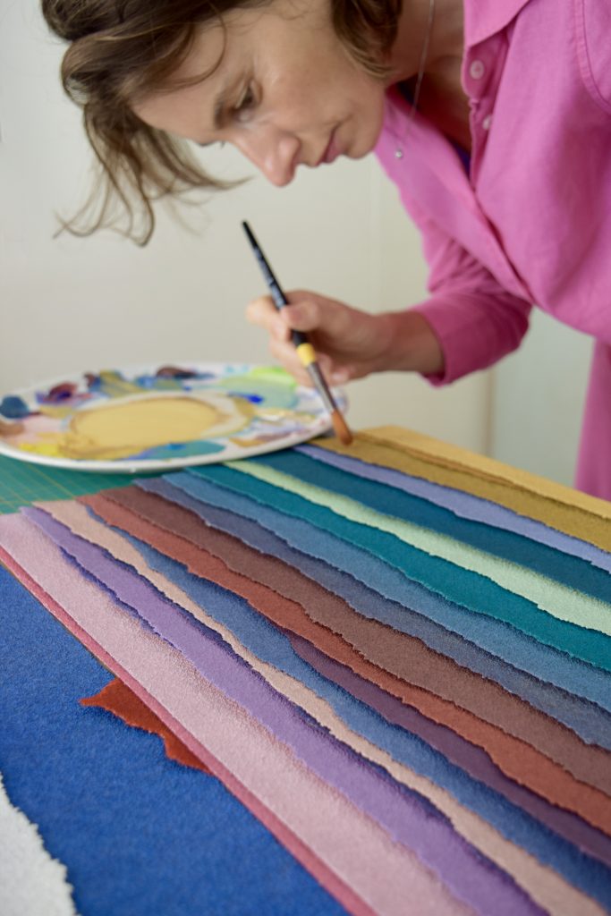 Del mare, cuore della sua ricerca, come spazio sensibile di cui indaga le possibilità estetiche e spirituali restituendole, purificate, in essenziali collages in carta vetrata, ne abbiamo parlato con lei, che sull’Isola dell’Elba accoglie nel suo atelier facilitando «un diretto scambio tra arte e vita».