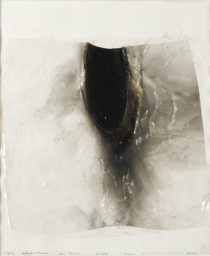 Alberto Burri, Combustione, 1971. Plastica, acrilico, combustione, vinavil su carta, cm 30×25