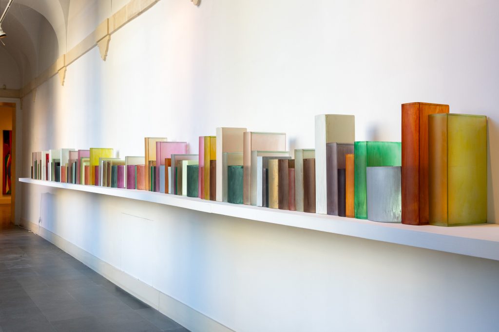 La discussione fra le due collezioni e il contesto dell’edificio, fin dal suo ingresso, non è assolutamente neutra. La scelta di collocare opere emblematiche della collezione della Fondazione – Accardi, Anselmo, Kounellis – nel cortile d’accesso introduce e al contempo costruisce un primo cortocircuito percettivo: il linguaggio dell’arte italiana del secondo Novecento si misura immediatamente con una spazialità storica che non viene addomesticata, né trasformata in semplice contenitore. È un confronto diretto, spesso ruvido, che prepara il visitatore a un percorso in cui la cronologia non è mai l’unico criterio ordinatore. La maestosa scalinata immette il visitatore all’interno di una mostra che copre un arco temporale di oltre 50 anni, dal 1970 al 2025.