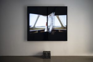 L’eco di queste tematiche riverbera altresì nelle due opere collocate nel secondo ambiente della galleria, Fantastic Voyage e Master Blaster, che il curatore descrive assieme come un “viaggio allucinante” e un “viaggio angoscioso”, mettendo in campo ancora una volta la metafora di un travaglio esistenziale che investe non solo l’immagine, ma anche il medium, parte attiva del medesimo tilt. Come l’involucro meccanico di un sistema organico, la materia delle installazioni di Daniele Puppi crea una relazione diretta con il corpo del visitatore, influenzandone i movimenti nello spazio, quasi ad assalirlo, ricercando con esso un’inedita formula di empatia.