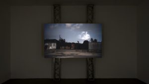 La videoinstallazione posta sulla soglia della prima sala trae il titolo dalla vicenda umana di un mugnaio eretico del ‘500, Menocchio, diminutivo di Domenico Scandella. Attraverso la manipolazione di un estratto video del Mago di Oz, Puppi congela l’affannosa corsa di un essere antropomorfo nel momento della sua decelerazione, riproducendo in loop il momento del rilascio della spinta propulsiva del corpo in movimento. Il processo di alterazione dei campi energetici è indagato anche nella stanza successiva con l’opera Notturno, rimando sia alla tradizione pittorica che a quella musicale, in cui l’artista registra l’incursione di una tempesta di fulmini di fronte al suo studio. L’atteggiamento contemplativo incarnato dall’immobilità dell’inquadratura rimanda al topos classico dell’impotenza dell’uomo di fronte al fenomeno naturale, aprendo un ponte con la nostra contemporaneità — determinato inevitabilmente dalla scelta del titolo della mostra — che offre all’osservatore un momento meditativo di partecipazione, al netto di ogni giudizio, al trauma collettivo del nostro tempo.