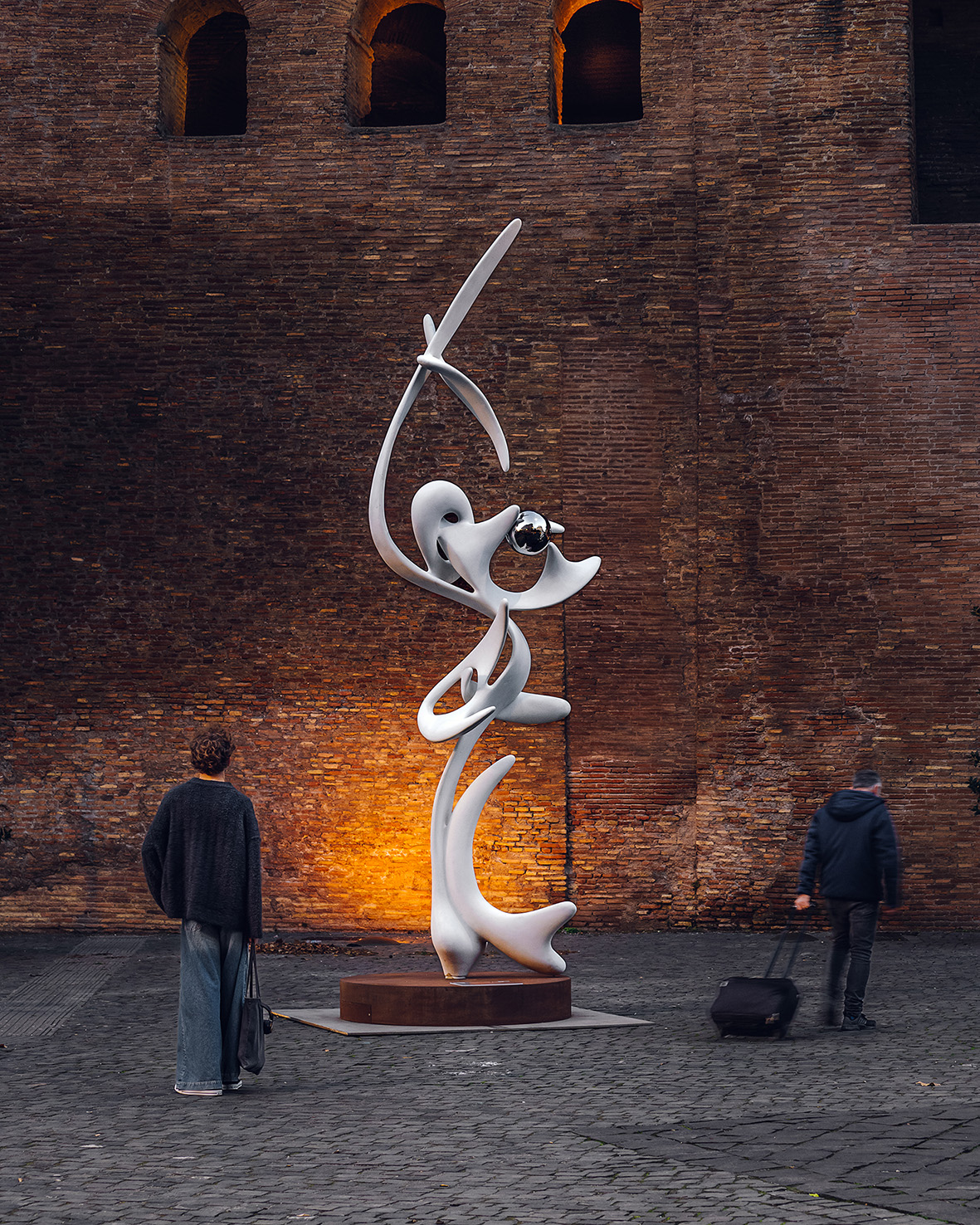 Un approccio, quello alla scultura astratta, che vede una stretta connessione tra antico e contemporaneo, e sottolinea la capacità dell’arte di affrontare le sfide della società. Attraverso opere monumentali, dal ricordo delle vittime di mafia alla ricerca della fratellanza tra diverse culture, l’artista esplora la complessità umana e la necessità di unione in tempi difficili.