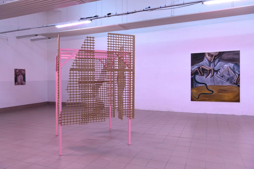 In “L’ora del Lupo” a Spaziomensa, sono Giovanni De Cataldo e Dario Carratta a dare forma alle loro visioni, suggerite da quei momenti sospesi in cui, di notte, si illumina lo spazio del sonno e dei sogni. Contemporaneamente, la città acquisisce una nuova identità sotto le vesti della quale si legittima “l’accadimento di eventi che trovano la loro ragion d’essere nell’oscurità”. Il non luogo è pretesto di riflessione per i due artisti che hanno disseminato nelle stanze di Spaziomensa dipinti e sculture. Così, creando un nuovo ambiente in cui aleggia un’atmosfera notturna intrisa di mistero, i due artisti ci portano dentro questo “viaggio sincronico”, dove fa luce un neon sprayato di rosa.
