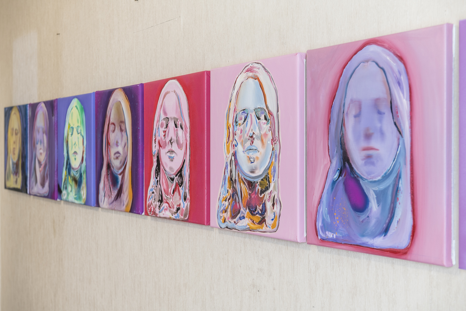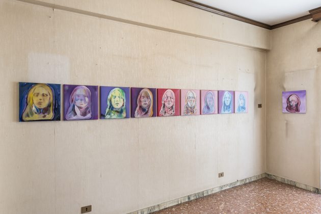 Una serie di venti dipinti campeggia sulle pareti della prima stanza di Casa Vuota. Una variazione sul tema di un ritratto: quello di una figura con gli occhi chiusi rappresentata dal collo in su, dal suggerimento di una fotografia. Una testa dormiente dipinta in più versioni, all’apparenza simili ma in realtà diverse in alcuni dettagli e nella gamma cromatica. L’atto del dormire è il comune denominatore di questi volti sopiti che danno adito a un’interrogazione sul sesso riconoscibile, risolta nell’androginia. «Ho scelto di abitare Casa Vuota con dei ritratti, teste di figure dormienti, che offrono per me il pretesto per indagare su alcune tematiche che ho affrontato negli ultimi anni con la mia pittura, come i discorsi sull’iconografia e sull’androginia».