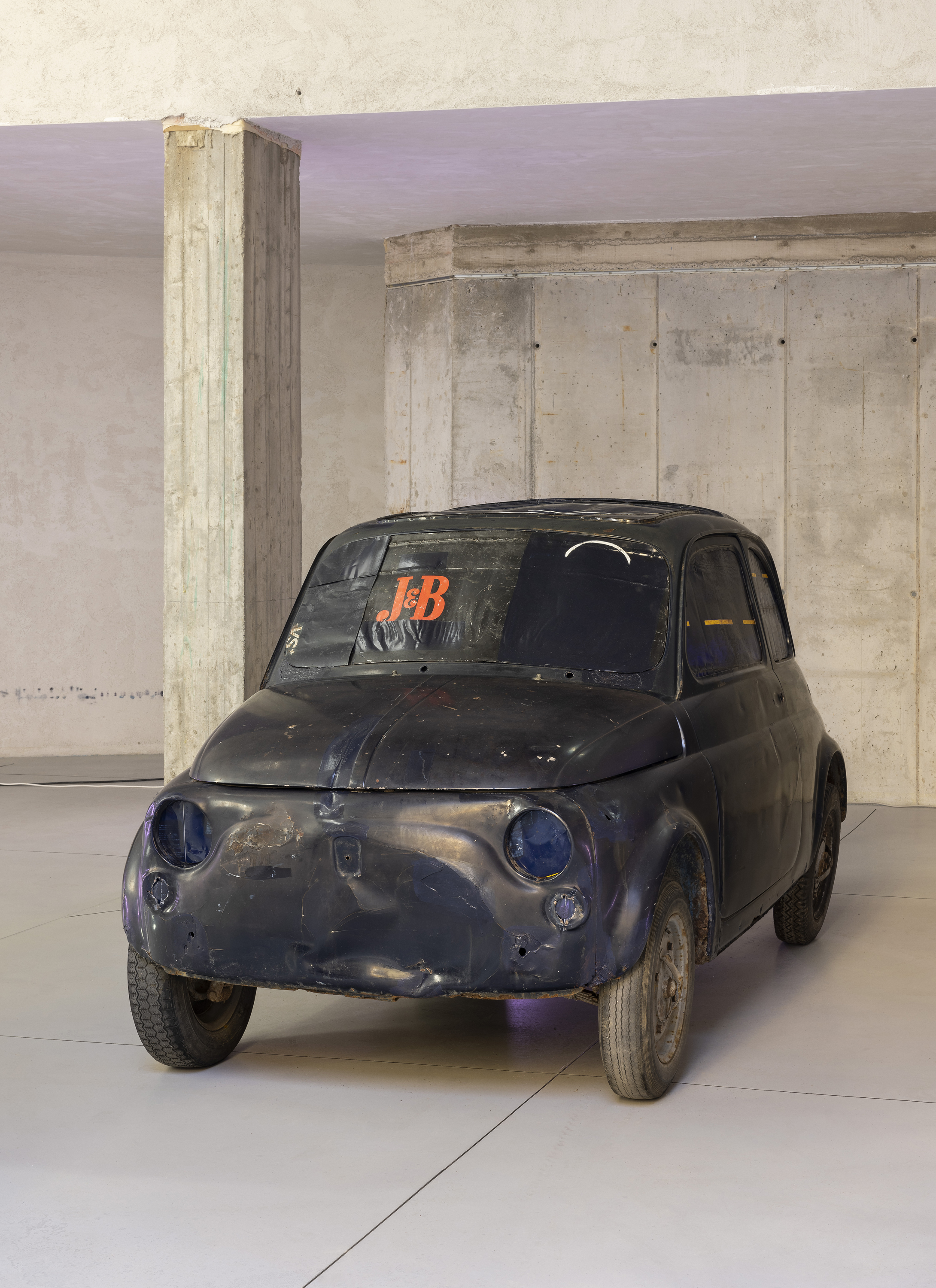 Dal 12 al 16 aprile, in occasione di miart e Milano Art Week 2023, nello spazio LoroMilano, Flavio Favelli presenta “Le macchine”, un progetto speciale realizzato in collaborazione con Francesca Minini e con il supporto della Fondazione Pietro e Alberto Rossini. Tre grandi opere scultoree, auto d’epoca, una Jaguar, una BMW e una Fiat 500, ritrovate e svuotate, sono diventate l’oggetto del minuzioso lavoro dell’artista, che le ha ricoperte e decorate utilizzando pittura a smalto e inserti di lamiera.