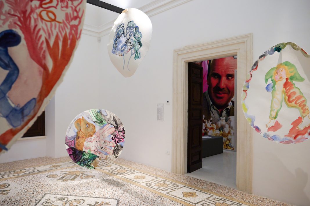 Al passato attinge anche il collettivo Numero Cromatico attraverso gli 80 pittogrammi realizzati su 96 mila tessere di una grande tenda Resterai con me per tutta la notte, 2023. Dalle rune ai pixel, lo strumento di divinazione viene ricontestualizzato e offerto alla lettura dell’onironauta. Un linguaggio criptico come il mondo poetico di Valerio Nicolai, Castello in corridoio, 2023 e Due battitori e un pollo bis/ Pollo in acquario, 2023 in bilico tra quotidianità e metafisica e il mondo equivoco di Thomas Braida, Brain Soup, 2023 e Pisciatina ad alta quota, 2022 atmosfere stranianti dominate da un senso di sospensione e instabilità rivelano mondi nuovi in cui tutto è possibile.