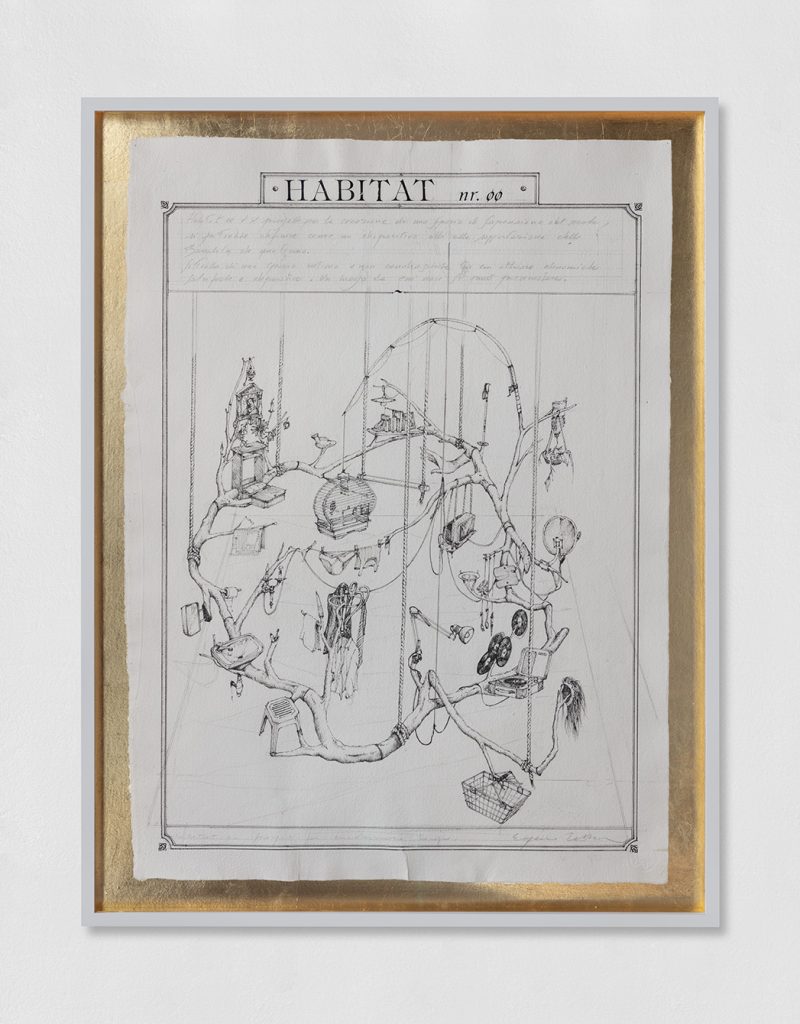 Habitat 00 project #02 è un lavoro di Eugenio Tibaldi che si articola in più momenti. Nasce come realizzazione di un’opera progetto prima realizzato a mano, come disegno, e poi fisicamente come installazione/scultura. Il progetto va ad indagare il mondo intimo delle persone, fatto di quelle piccole cose quotidiane che tutti abbiamo e a cui non sappiamo rinunciare.