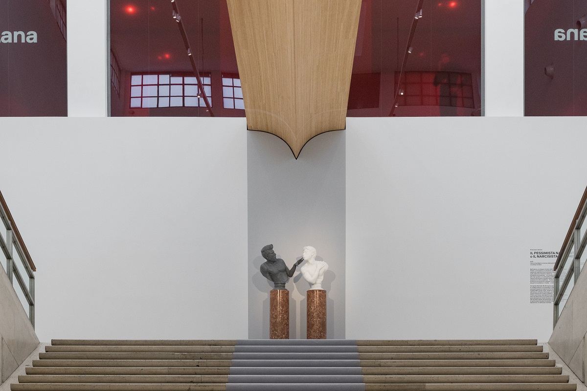 Un doppio Fedez ritratto nel marmo da Francesco Vezzoli, alla Triennale Milano