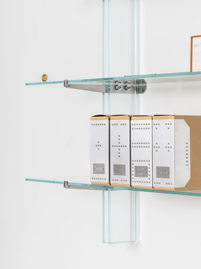 I FormaFantasma invece sono partiti da un presupposto, celebrare l’archivista e la sua storia più di quello che è archiviato. «Archivio Massimo” è il risultato di un invito inusuale quanto eccezionale: sviluppare un corpo di lavoro reagendo in modo libero all’archivio privato di Massimo Minini. Forma Fantasma elabora così un lavoro che concepisce l’archivio come un deposito stratificato e complesso della memoria. La pratica dell’archiviazione è pertanto vista come uno strumento per trasformare le esperienze di vita e lavoro in frammenti materiali tangibili e consultabili, non soggetti al passare del tempo». Gli oggetti disegnati dai FormaFantasma, non sono pensati per una riorganizzazione sistematica dei materiali d’archivio o per offrire maggior accessibilità al modo peculiare di Massimo Minini di categorizzare i documenti raccolti nell’arco di una vita, piuttosto sono pensati come dei dispositivi che celebrano l’archivista oltre a ciò che è archiviato.