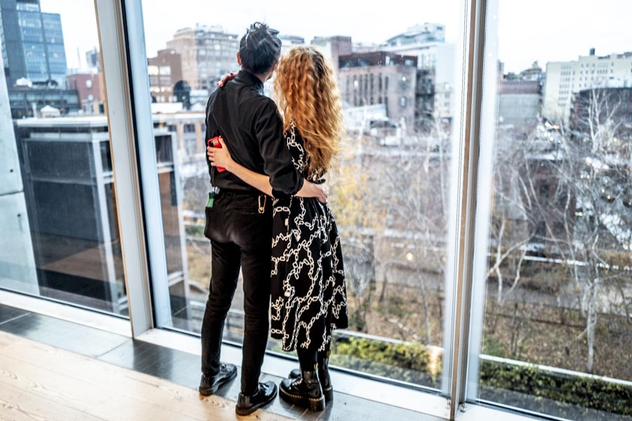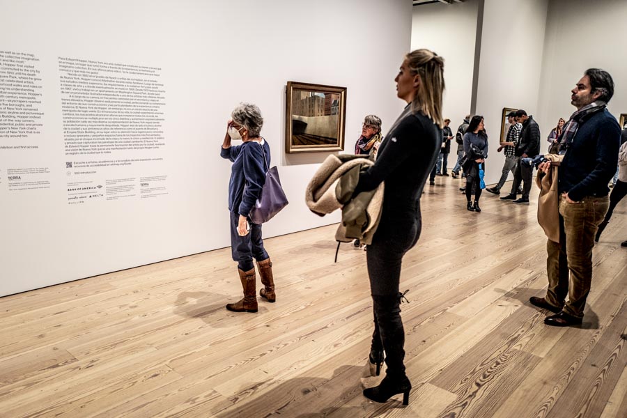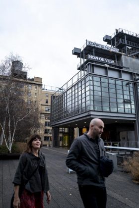 Abbiamo passato un pomeriggio tra le opere del Whitney, fotografando i newyorkesi e i turisti. Ci sono piaciuti i quadri dal taglio sghembo, ispirato a Degas, come New York Pavements e l’ultimo quadro che l’artista dipinse, il doppio ritratto con la moglie intitolato I due commedianti e ovviamente la vista dal Ponte di Williamsburg. Anche se il pittore faceva lunghe passeggiate il punto di vista è spesso dall’alto, dal cosiddetto “El”, il treno elevato che un tempo attraversava New York. La città che Hopper ritrae è in parte realistica e in parte immaginaria, e quando il visitatore esce, magari per passeggiare sull’Highline, se la porta dietro nella mente, come foto mai sviluppate di un rullino dimenticato.