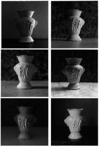 Il desiderio e il bisogno di ritrarre serie di oggetti identici che vengono plasmati dalla luce e dal chiaroscuro permettono a Vimercati di dimostrare come in fotografia il passare del tempo, lo scorrere veloce di un’epoca, o semplicemente la diversa posizione della luce a seconda dell’ora, siano in grado di trasmettere interpretazioni sempre diverse della stessa realtà.