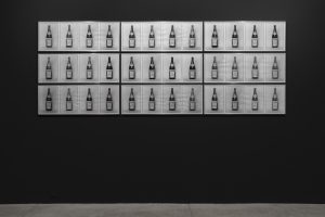 La mostra inizia al civico 7, con l’emblematica sveglia che si trova poi, in altre prospettive, ad accogliere lo spettatore negli altri due spazi. Qui, Un minuto di fotografia del 1974 può essere inteso come il manifesto del pensiero di Vimercati, il quale affermava: “Considero elemento qualificante del mio lavoro non la rappresentazione dell’oggetto, bensì la fitta trama di relazioni che si verificano tra una registrazione e l’altra: opera come teatro di esperienza”. Nella serie di 13 foto Vimercati posiziona una accanto all’altra l’immagine del quadrante fisso sulle 2:46. A trascorrere, però, sono i secondi, testimoni del dispiegarsi del tempo, del cambiamento che in una frazione di secondo avviene in noi e nel mondo che ci circonda. Accanto, la serie delle 36 fotografie in bianco e nero che ritraggono 36 bottiglie di acqua Levissima. 36 in particolare come la capacità del rullino Kodak dove la diversità tra un oggetto e l’altro si ritrova nella posizione delle etichette, nel gioco di luci e ombre, nel livello dell’acqua. Una bottiglia in particolare viene inondata da una sorta di romanticismo, scorgendo sulla sua superficie il riflesso della silhouette di Franco nell’atto di scattare.