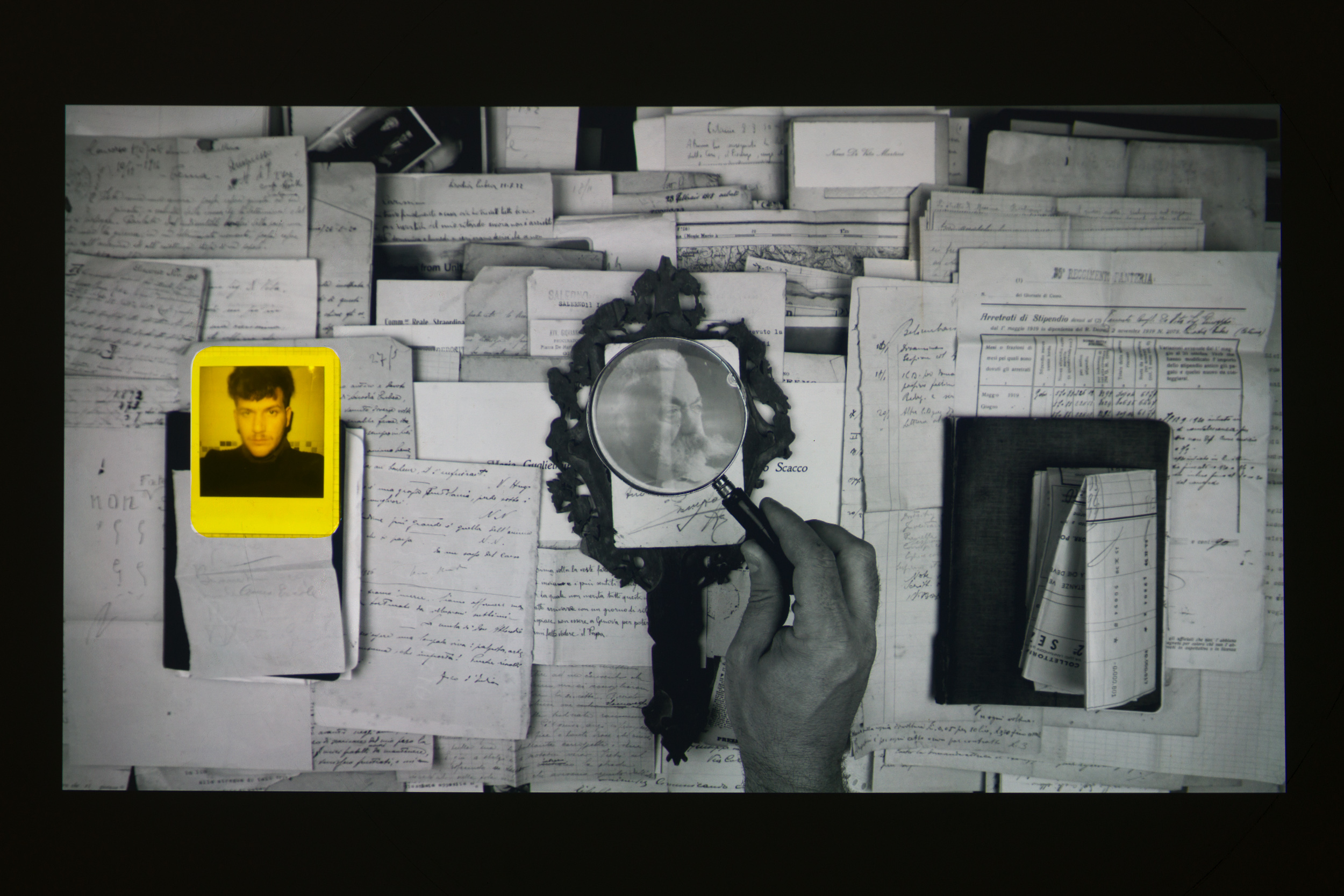 Sublime “mistificazione” analogica, funzionale alla creazione di un percorso logico. All’innesto perciò di una seconda parte, una sorta di passaggio di consegne Martini-Milotta. Qui le mani di Anto e Arianna scartabellano per 3 ore – velocizzate in 20 minuti – i documenti ritrovati.