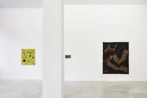 Il nucleo più recente dei lavori di Offman – una quindicina di tele e di carte di diverso formato allestite libere, senza alcun montaggio – è disposto alle pareti della galleria bolognese con un ritmo sincopato che quasi sembra proiettare il visitatore in quel continuo gioco di rimandi tra le superfici, i colori e i diversi materiali che è protagonista in ogni sua opera. Una pittura sensoriale e carica di pigmento, quella di Francis, che mescola l’astrattismo occidentale – sua prima fonte di ispirazione – con il calore delle cromie tipiche della cultura africana. I verdi acidi, il rosso intenso, l’ocra si stemperano in un continuo succedersi di piani e di strappi che segnano la superficie come un’archeologia processuale: in ogni passaggio cromatico sembra presente l’azione pittorica e il cambiamento di stato. E ad un tratto il bianco arriva a segnare un contorno o un confine, un’interruzione fisica in questo flusso cromatico, donando all’intera composizione una tensione netta verso la forma e la geometria. “Non cerco la figurazione, non trovo alcun interesse in essa. Dipingere un corpo, trattarlo come pure forma, lo rende privo di vita e mi riporta alla mente ricordi non felici del mio passato, il genocidio del mio popolo”.
