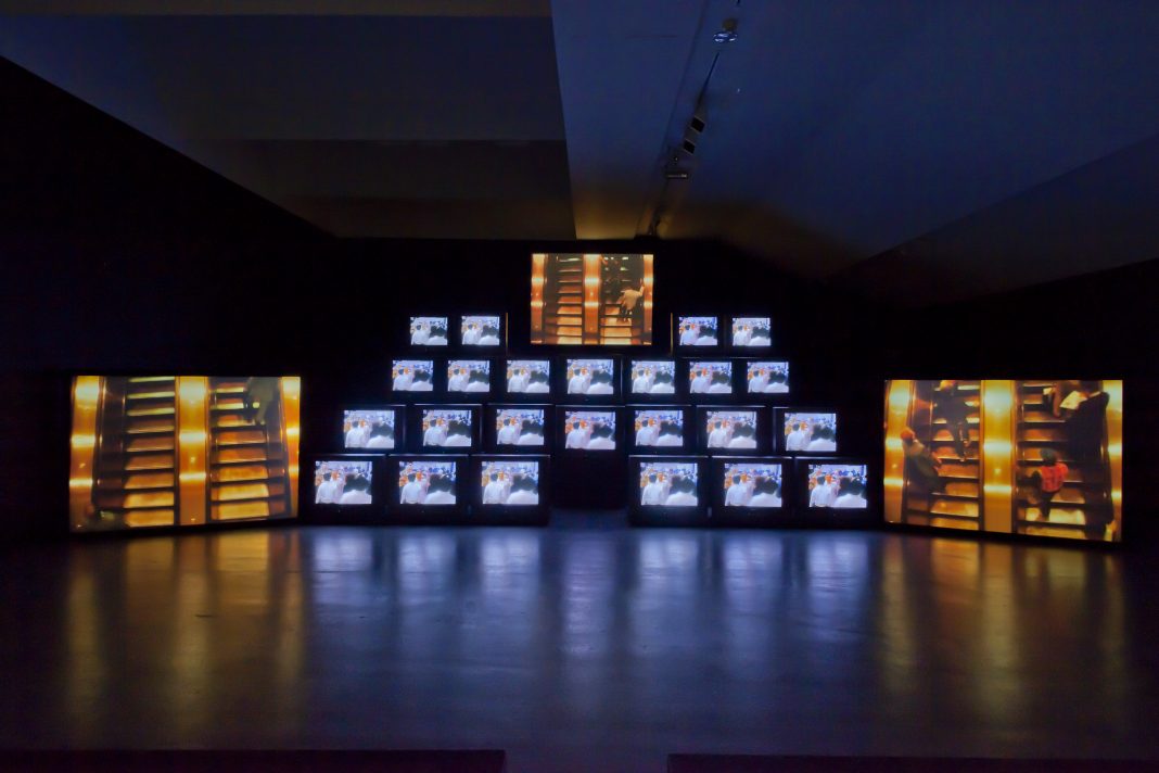 Total Recall è l’installazione composta da ventiquattro monitor e da tre schermi di proiezione realizzata nel 1987 dell’artista americana Gretchen Bender che apparteneva alla Pictures Generation; preveggente della “saturazione dell’immagine” accaduta nei decenni successivi.