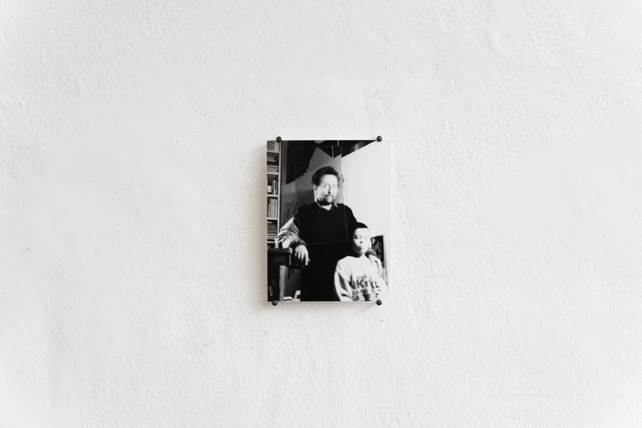 Poi, appesa a un’altra parete c’è una fotografia di un bambino e di un adulto che stanno vicini, come in un ritratto di famiglia. «Vedo forse la faccia di quello “stravagante” – o di quegli stravaganti perché no – autori di tutto questo?!», ancora mi domando. Uno di loro indossa pure braccia imbottite da super uomo.