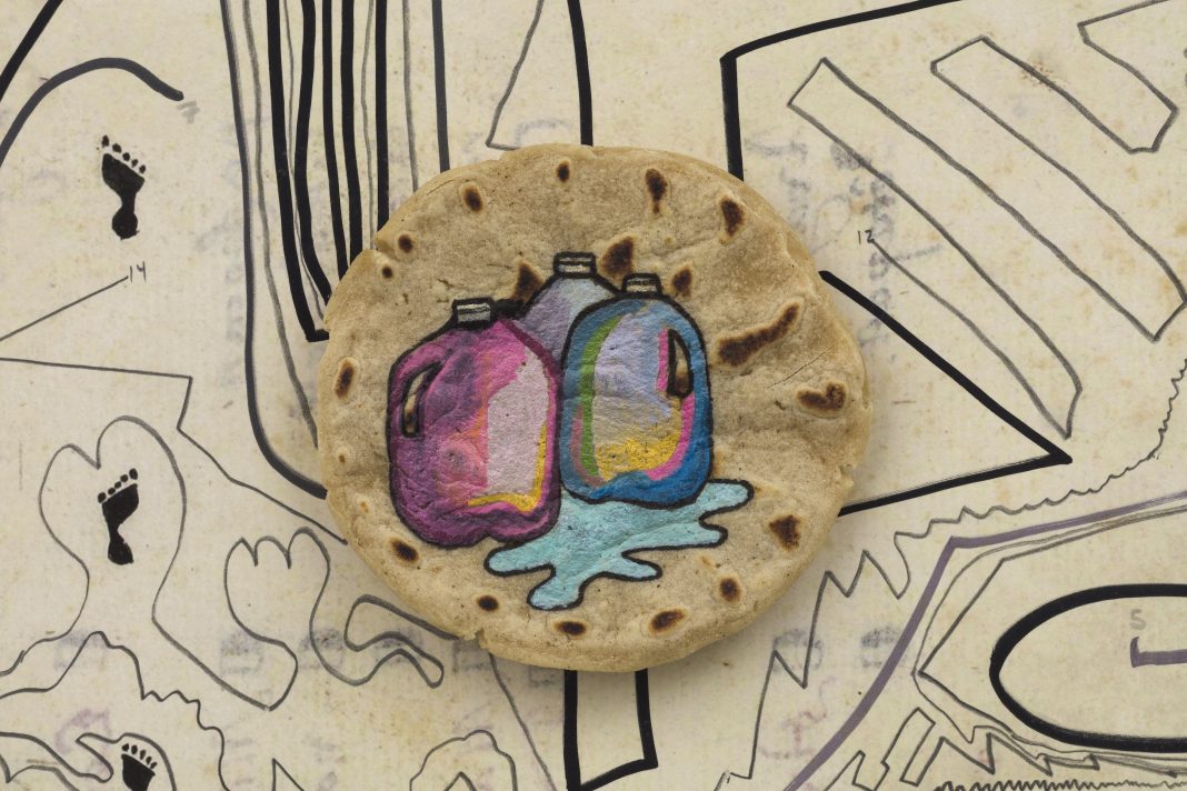 Altrettanto intensi sono la serie delle mappe immaginifiche chiamate Tripa Chuca (Dirty Guts) in cui combina gioco, logica e strategia. Opere disegnate sui muri, accanto ai dipinti, in cui riprende i disegni narrativi del Codice Azcatitlan del XVI secolo, che raccontavano la storia dell’occupazione e della migrazione degli indigeni aztechi durante il periodo coloniale spagnolo. Nel corso del tempo quei disegni sono diventati un gioco per bambini salvadoregni, in cui i partecipanti tracciano linee che collegano coppie di numeri, che però difficilmente si incontrano. sequenze di linee che formano uno schema astratto che diviene metafora della migrazione, dove spesso membri della stessa famiglia hanno difficoltà a reincontrarsi e a vivere di nuovo insieme.