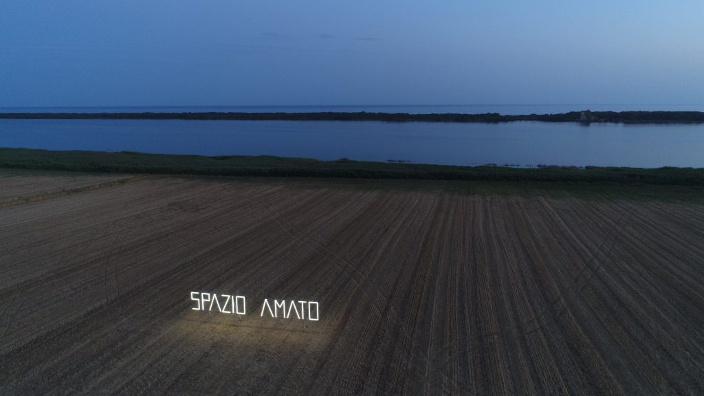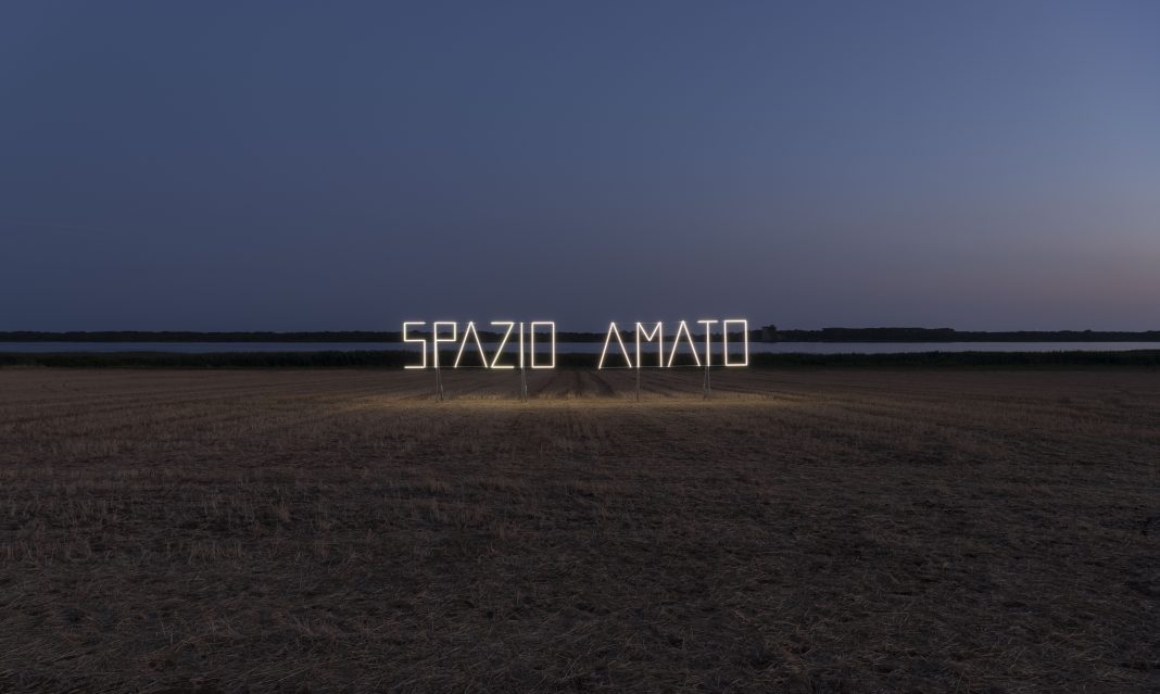 Aggiungendo una nota straniante all’immutabilità millenaria del paesaggio della Maremma, l’installazione di Massimo Uberti suggerisce l’inestimabile valore del territorio in cui sorge e l’imprescindibile necessità di preservarlo. Pensato per una fruizione solitaria, SPAZIO AMATO sorge infatti sulla strada litoranea tra la ferrovia e il lago di Burano che collega Orbetello a Capalbio, meta estiva tra le più rinomate del centro Italia. Visibile anche dal treno, l’opera realizzata da Massimo Uberti appositamente per l’edizione 2020 di Hypermaremma agisce come un’evanescente didascalia luminosa che risignifica l’intero campo visivo.
