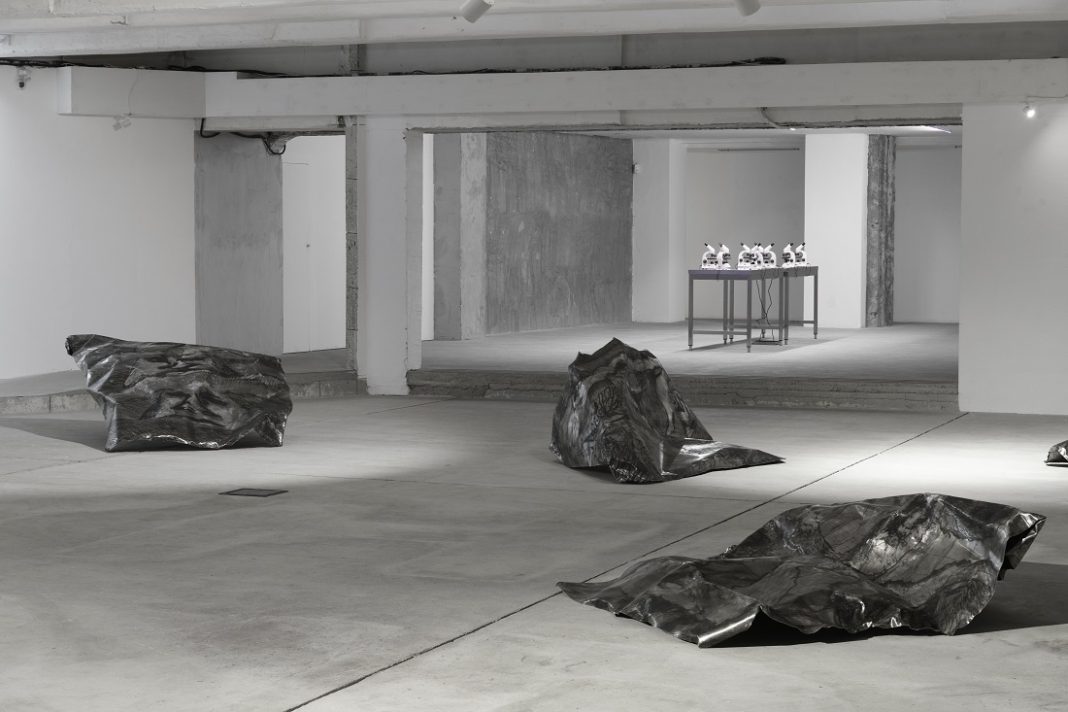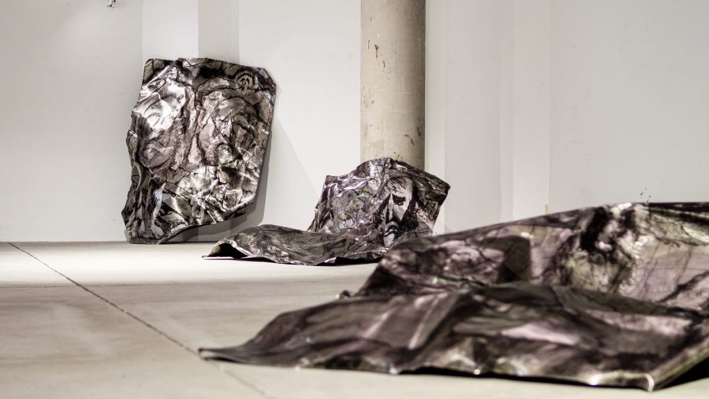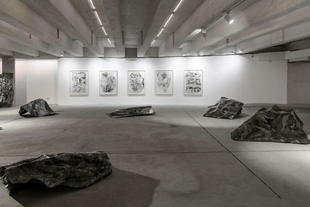 nella Project Room della fondazione di via Francesco Crispi, per l’occasione divenuta un vero e proprio laboratorio. Qui, troviamo ciò che resta del lavoro che avrebbe dovuto assicurargli l’ingresso nel Guinness World Records, grazie alle stampe calcografiche più grandi al mondo. Il breve film che ci accoglie documenta l’intero processo ideativo e progettuale, culminato – pare – con l’esplosione e la scomparsa del collettivo a pochi giorni dall’inaugurazione, mentre un periodico all’ingresso ci informa sulle notizie di approfondimento in merito alla vicenda.
