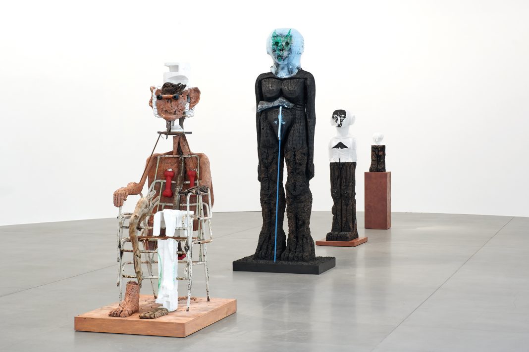 Il rapporto di Huma Bhabha con il mondo classico è quindi certamente molto forte, nonostante i riferimenti culturali nel suo lavoro siano decisamente eterogenei in un sapiente mix di Hi and Low, in cui fa la parte del leone il mondo della fantascienza e in particolare i visionari romanzi di Philip K. Dick, o il cinema body horror di David Cronenberg, le sculture lignee di Costantin Brancusi, i gessi di Auguste Rodin, i corpi filiformi di Giacometti, i combines di Rauschemberg, le maschere tribali africane fino all’estetica cartoon di una serie televisiva di culto come la canadese South Park.