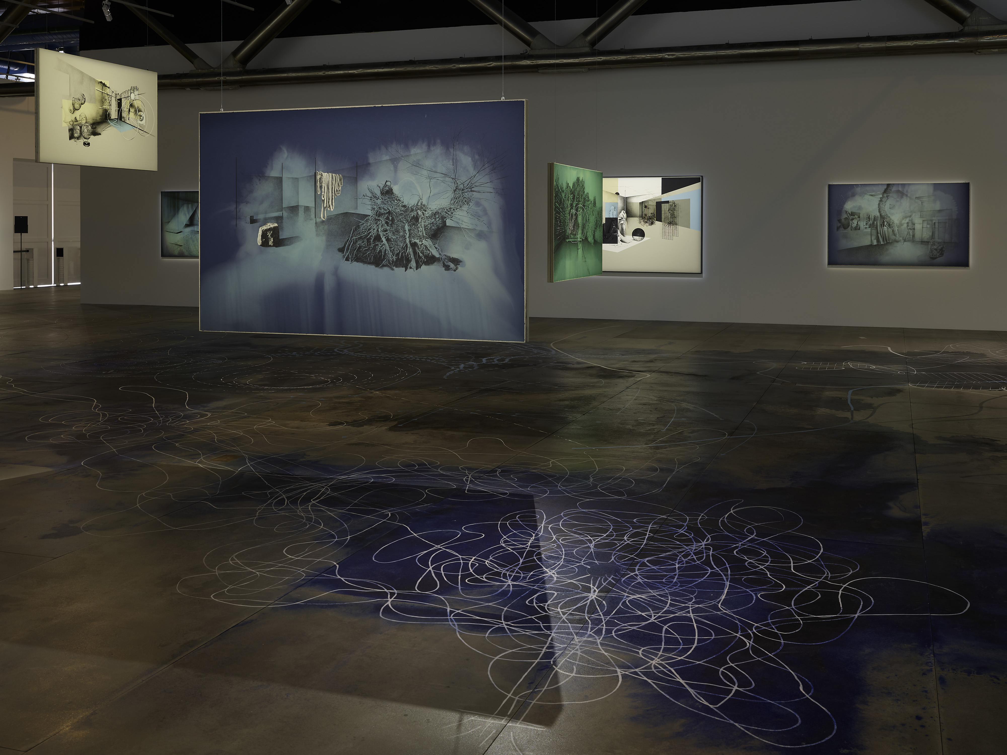 Tatiana Trouvé presenta “Le grand atlas de la désorientation” presso la Galleria 3 del Centre Pompidou di Parigi fino al 22 agosto. La mostra accoglie, su ottocento metriquadrati, sia inediti che serie conosciute di disegni di grande e medio formato come The Great Atlas of Disorientation, Remanence, Les Dessouvenus e Intranquillity, ma anche The Guardian, le note sedie in marmo, bronzo, onice e rame, traboccanti di oggetti personali di custodi di museo assenti. I disegni sono dappertutto, appesi alle pareti, o sospesi al soffitto come per tracciare un labirinto per il pubblico, altri sul pavimento invece restituiscono percorsi bizzarri e misteriosi, si va dagli spostamenti dei branchi di lupi ai sogni degli aborigeni, e via dicendo.