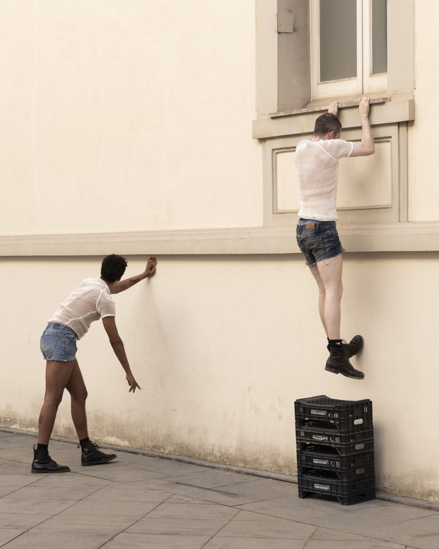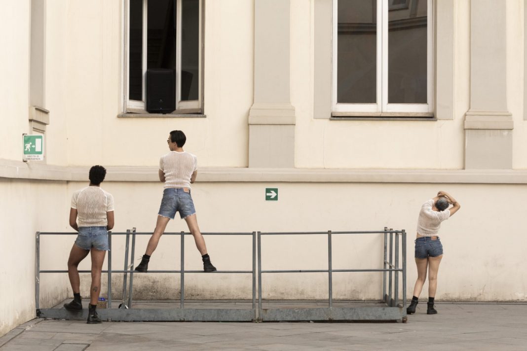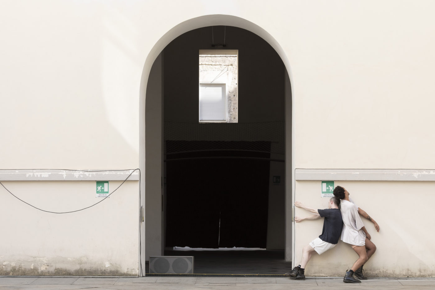 Cinque danzatori, immersi in un silenzio profondo, che incrociano i loro corpi, che rispettano o creano al momento pattern corografici. Ma senza sfidare quarte pareti o gli sguardi diretti dell’audience. Stavolta le loro ombre giocano a comporre sulle murature bianche del Palazzo Donnaregina, sede del Museo Madre di Napoli. Corpo, relazione, ambiguità, confusione. A chi è rivolto il gesto coreutico? Alla pietra tufacea o all’occhio dello spettatore? Dove inizia ma soprattutto dove termina lo spazio e la relazione poetici disegnati dal corpo con la materia animata e inanimata?