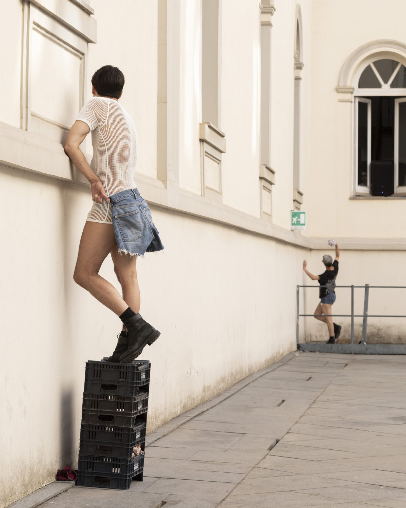 Questo gioco di specchi tra cavea, scena e orchestra – pubblico, attori e orchestra nel teatro greco antico – è l’anima di Rub Up on Madre, performance site specific del coreografo e ballerino australiano Adam Linder a cura di Gigiotto Del Vecchio. Un lavoro pensato per festeggiare i 20 anni del Museo Madre, prodotto dalla Fondazione Donnaregina per le arti contemporanee, con l’organizzazione di Archivorum e il supporto degli Amici del Madre.