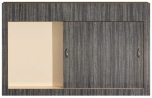 Untitled 1967/1984, è l’immediata dichiarazione di intenti non solo del percorso espositivo, ma del concetto di base dell’intera ricerca artistica di Richard Artschwager, quello di disturbare la percezione visiva dello spazio e rendere insoliti gli oggetti di uso comune che lo animano, mediante materiali poveri ma di grande diffusione. Così abbiamo una scultura (?) installata a oltre tre metri di altezza, in un angolo, realizzata in formica, materiale industriale e commerciale solitamente destinato a ricoprire le superfici di mobili di largo consumo, che rappresenta un altoparlante (?), comunque un oggetto “inutile”, affascinante e magnetico. Fondendo e mostrando, già in questo primo elemento scultoreo, l’anima della Pop Art, della Minimal Art e della Conceptual Art (movimenti cui ha strizzato l’occhio ma che non ha mai completamente abbracciato), ma altresì pittura e scultura, attestando quella chiara trasversalità artistica che lo contraddistingue da sempre.