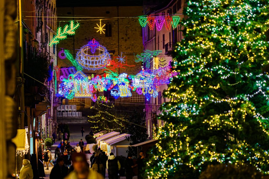 Non è il primo anno che Perugia scommette sull’arte per illuminare le proprie strade durante le festività natalizie: risale infatti al 1971 la prima luminaria d’artista. Un’audace installazione di Angelo Buonumori e Gianni Sani che i perugini avevano ribattezzato “il Serpentone” e che constava di un tubo di plastica bianco che si snodava per il centro storico, oggi apprezzato dalla critica ma allora bersaglio di aspre e ironiche critiche. Oggi, 54 anni dopo, la città continua a scegliere un artista per reinterpretare la propria tradizione e tradurla in luce.