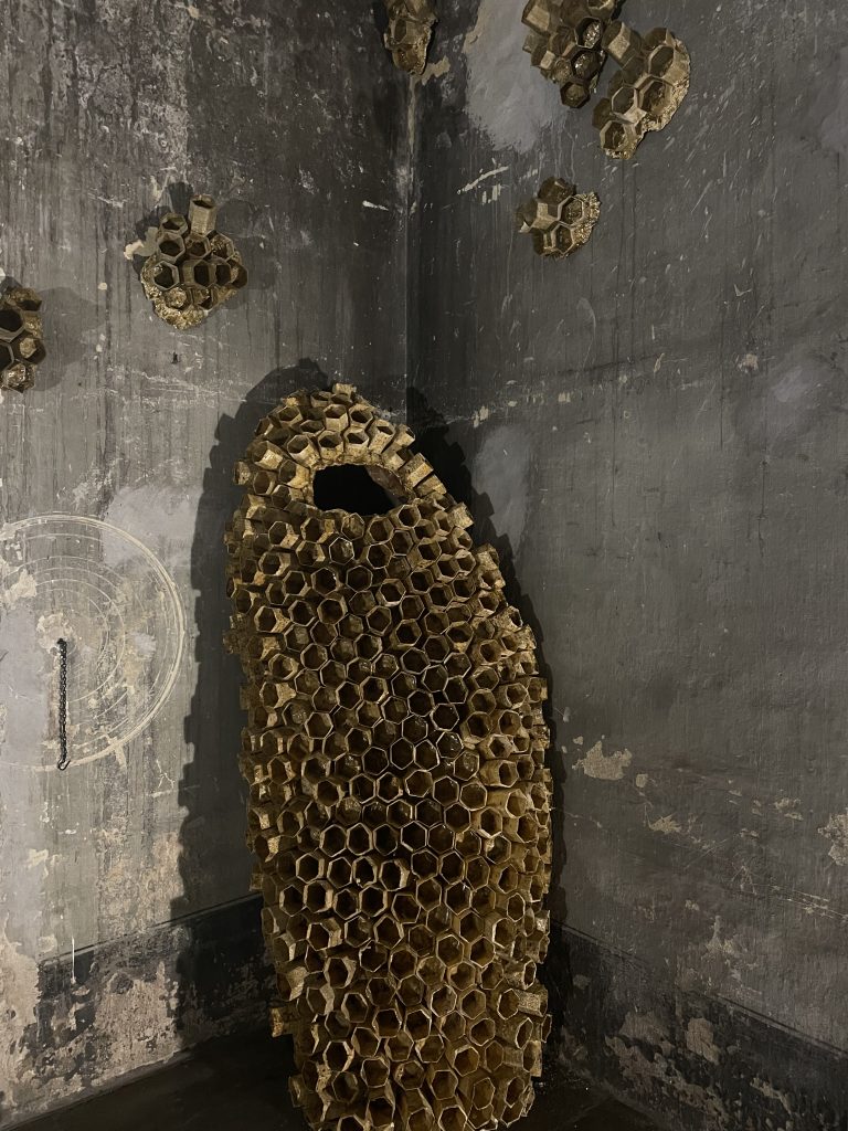 La prima opera che incontriamo nel percorso è quella del modenese Mitch Laurenzana, artista phygital che raggiunge la sua Ulteriorità attraverso l’utilizzo dell’intelligenza artificiale, dando vita ai suoi (in)HUMAN: esseri-entità che immaginano l’intenzione di confondersi tra di noi assumendo sembianze umane. Un percorso metafisico accompagnato dalle immersioni sonore dell’artista bergamasco Ema Grazioli che ci catapulta in questo viaggio onirico ma possibile. Un’opera che si fonde con lo spazio, in cui sono chiari e voluti i lasciti del passato ma in cui lo slancio è quello verso il futuro. Il piano superiore dello Scalo Vallino ci fa incontrare le opere del forlivese Matteo Lucca, artista che utilizza differenti materiali (sono destabilizzanti le sculture fatte con il pane) tenuti insieme da un unico comune denominatore cioè l’impronta che lascia il corpo umano e i processi che dentro a quell’impronta prendono forma grazie al caso e al fuoco che li forgia. Un gioco di stratificazioni, margini, crepe e rotture che segnano le superfici delle sculture in pane, fusioni in metallo o terracotta per ricordare che non c’è pienezza senza imperfezione e che è proprio dell’imperfezione che ci si innamora.