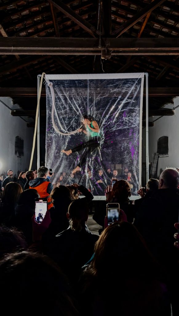 In questo pazzo, pazzo, pazzo fine settimana torinese, non sono mancati i colpi di scena e le mostre da bocca aperta. Come quella pensata da Alessandro Bulgini, Una vita migliore. Frammenti di storie dell’Istituto per l’Infanzia della Provincia di Torino all’interno dell’ex brefotrofio pensata per Flashback Habitat e Visual Persuasion di Paulina Olowska alla Sandretto in cui l’artista esplora le dinamiche del desiderio e dell’erotismo ridefinite da una prospettiva femminile; nel pullulare di eventi in gallerie (le colazioni mattutine sono state strepitose), musei, fondazioni, spazi sperimentali, studi di artisti si collocano anche i due eventi main di DIFFUSISSIMA, all’interno di due vecchi stabilimenti abbandonati, pieni di detriti, privi di bagni e riscaldamento, senza porte ma che meritano un “chapeau” al curatore, Simone Sensi e agli organizzatori per il coraggio. Una è la performance Shrink 01995 di Lawrence Malstaf avvenuta il 4 novembre alle 18 in anteprima nazionale allo Scalo Valdocco, l’altra è la mostra POST/UMANO l’ulteriorità, fino al 15 novembre 2023 allo Scalo Vallino. La collettiva Post-Umano l’Ulteriorità è una mostra phygital con protagonisti gli artisti Federico Clapis, Lawrence Malstaf, MiTch Laurenzana, Martina Fontana, Matteo Lucca e Francesco Niccoli Stultus che lavorano chi con il digitale chi con il fisico affrontando la parabola futuristica dell’umano.