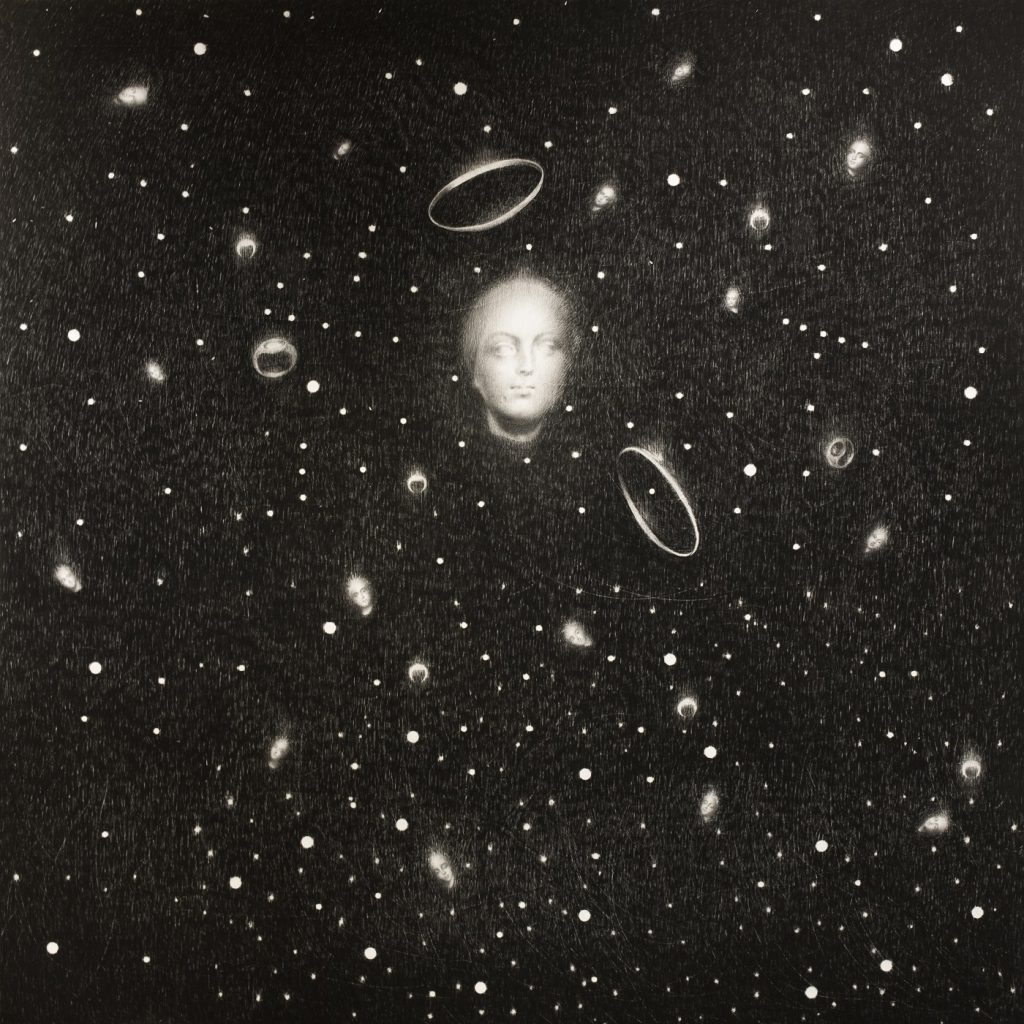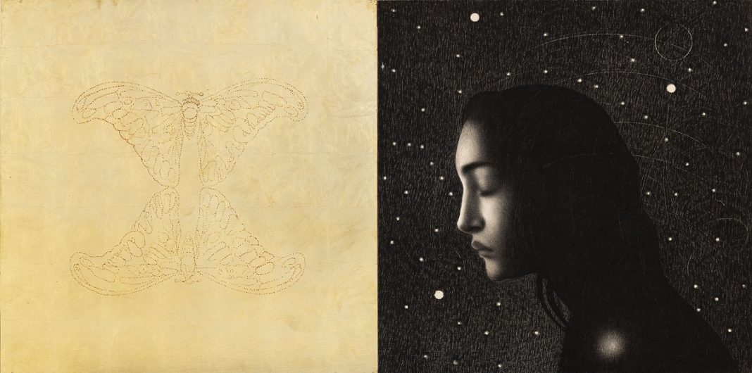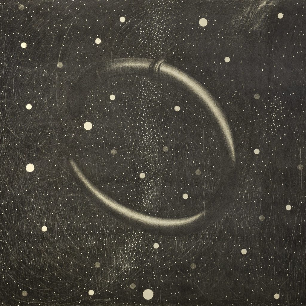 Ogni disegno apre un varco temporale emotivo e introspettivo: lo spettatore è invitato a “entrare” nei dettagli, a perdersi in quelle superfici percepite di piani prospettici ed emozionali, affascinato e trascinato all’interno di quelle ellissi oniriche tra materia e suggestione. Passato e presente, volti sospesi nell’eredità classica, occhi che interrogano anche se chiusi, trame floreali, citazioni che richiamano la Magna Grecia, natura e cosmo che si intrecciano. Superfici che sembrano scolpite più che disegnate, in cui la grafite diventa dimensionale e intima. In un tempo che privilegia l’immagine digitale, Omar Galliani continua a insistere sul segno, sulla materia della grafite, sulla lentezza del gesto. Le sue opere leggere e monumentali sono territori di meditazione, riti visivi, luoghi di soglia tra il reale e l’interiore. L’artista continua a esplorare la profondità del disegno, considerandolo non solo una tecnica, ma un’esperienza sensoriale e spirituale. Un «esercizio necessario come il respiro», un gesto che coinvolge corpo e anima. «Il disegno è pelle… ti fa viaggiare, respirare, sentire, vedere», spiega l’artista.