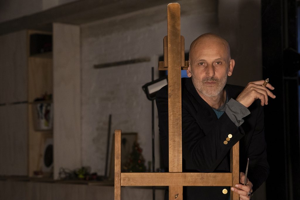 «Il primo “vero” studio in assoluto era a Quarto Miglio, sull’Appia Pignatelli. Erano degli appartamenti per gli operai di una società agricola che, una volta chiusa l’attività, furono messi in affitto, e finimmo lì con altri amici artisti perché, nello stesso posto, aveva casa-studio un nostro professore del liceo artistico, per me e gli altri soprattutto una figura paterna, che frequento ancora con grande affetto. Era un appartamento con un lungo corridoio, diritto e, sulla sinistra, tre stanze che usavamo come studi, la quarta stanza in fondo era la cucina e in ultimo il bagno.»