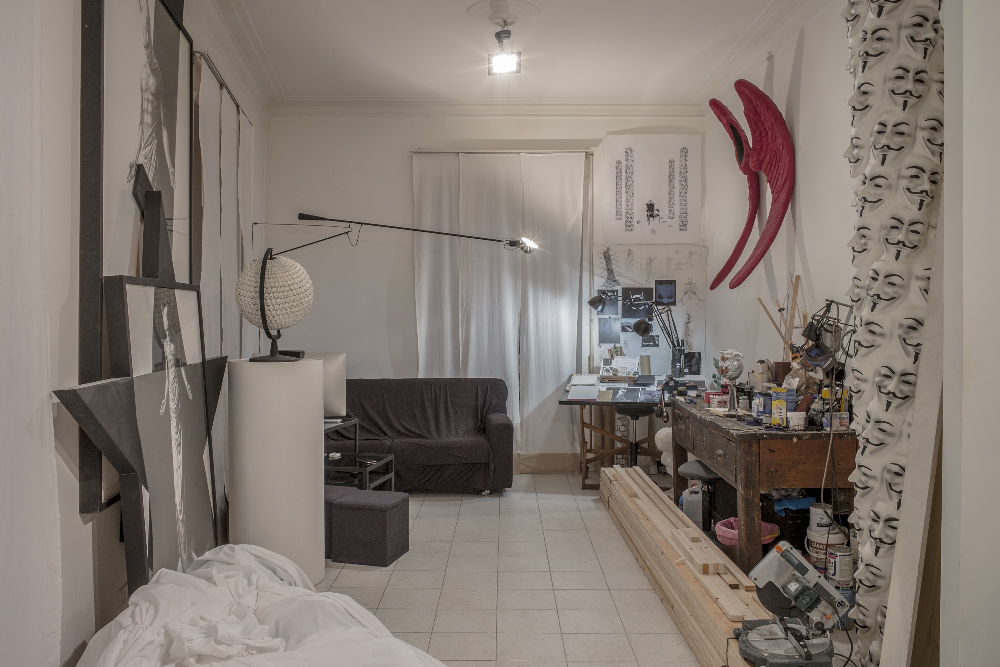 «La maggior parte dei miei lavori, per ovvi motivi tecnici, li realizzo in fonderia o in laboratori artigianali specializzati, per cui lo studio per me è il luogo della meditazione, della progettazione e della sperimentazione. Lo “spazio” intimo per eccellenza.»