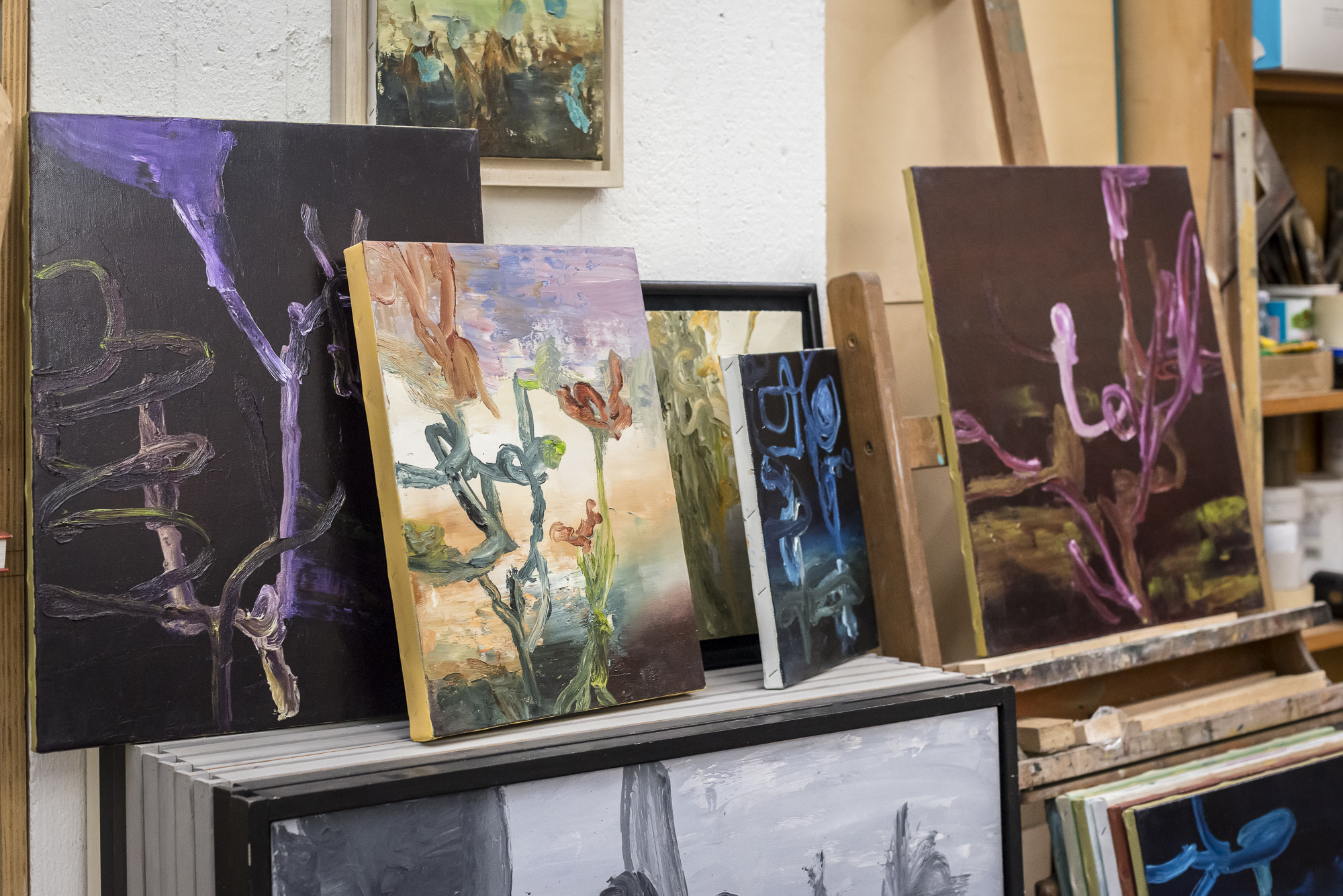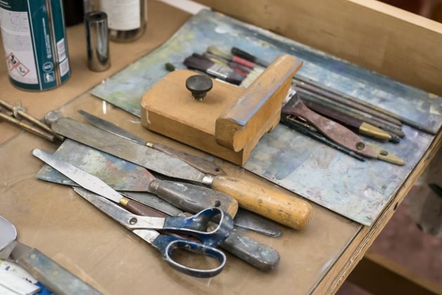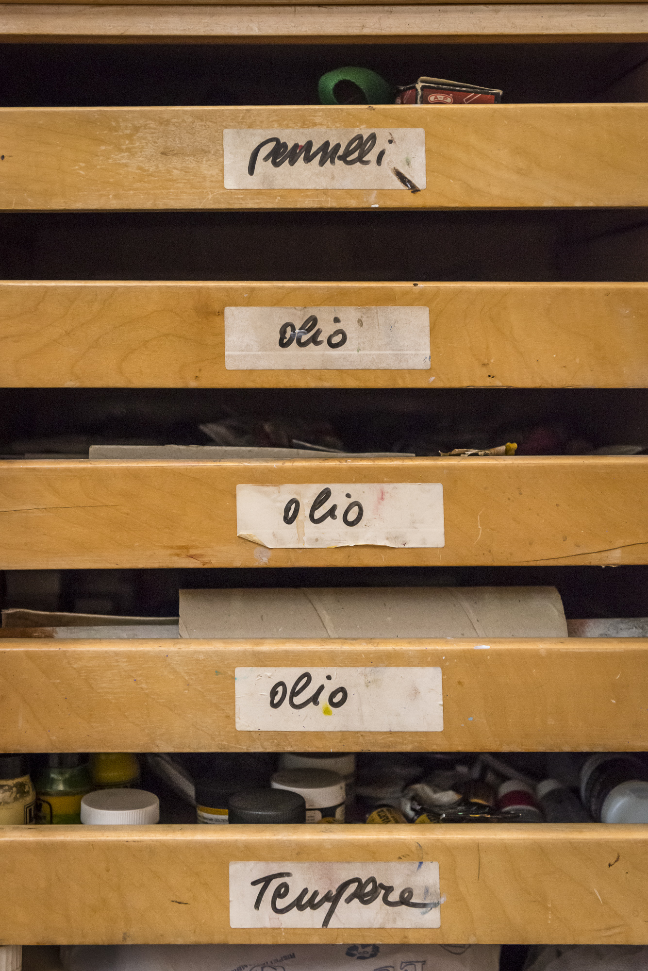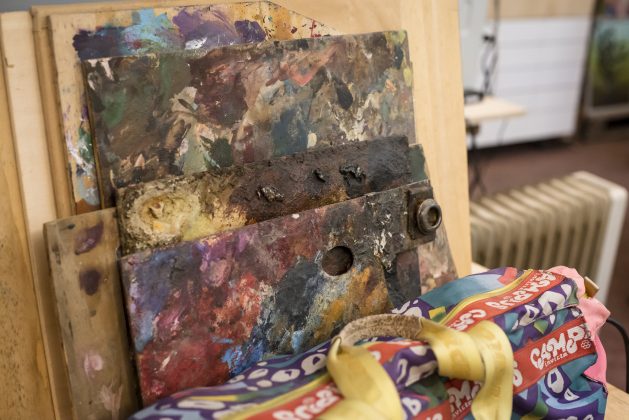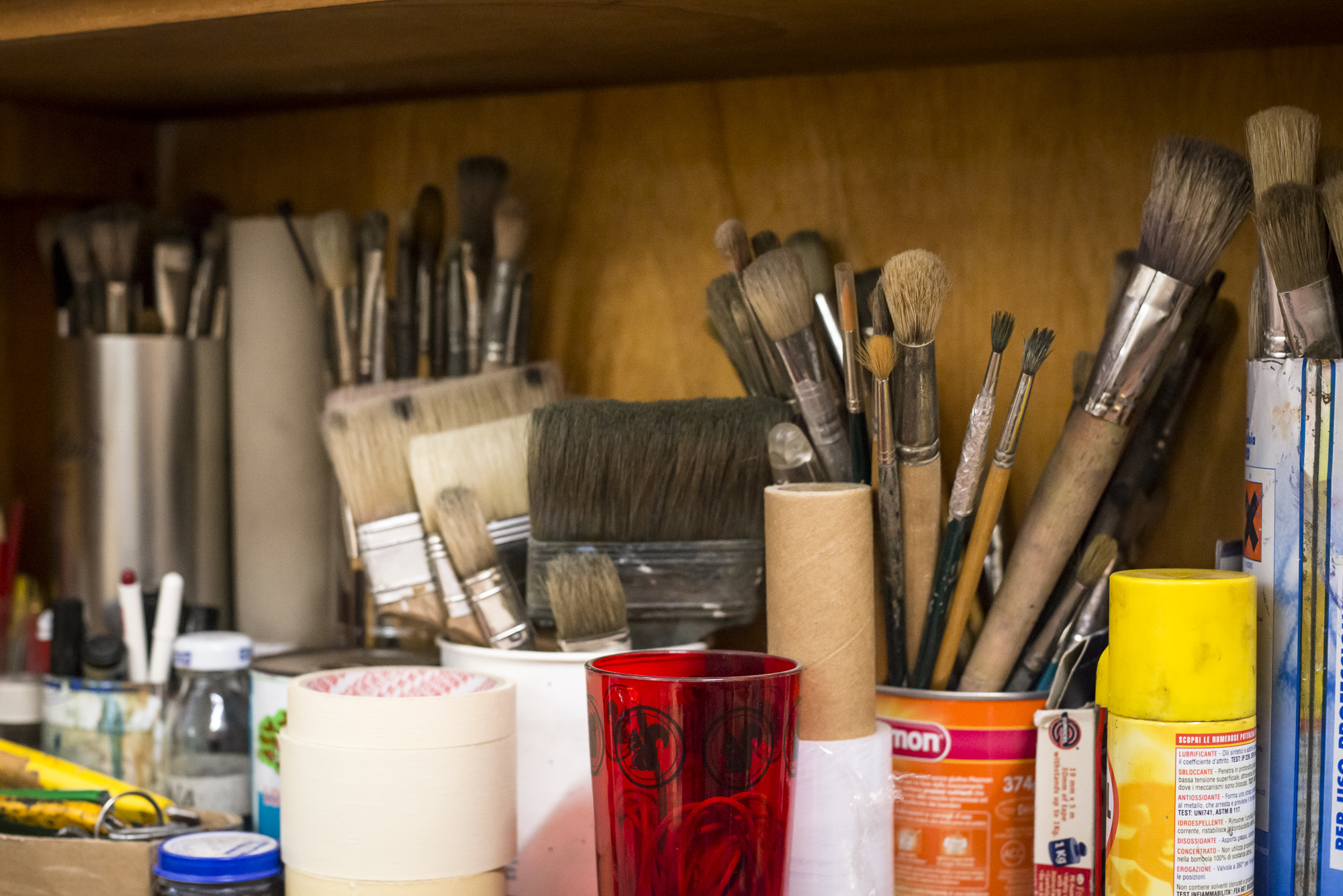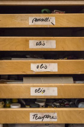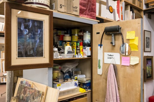 «Per ciò che mi riguarda, devo dire che lo studio, o più semplicemente il luogo di lavoro, è principalmente un luogo mentale, prima di essere uno spazio fisico; è quando fuori non c’è nessuno (anche se non è vero), poi diventa materialmente necessità, prova, sorpresa, frustrazione. È spazio e strazio … sempre.»