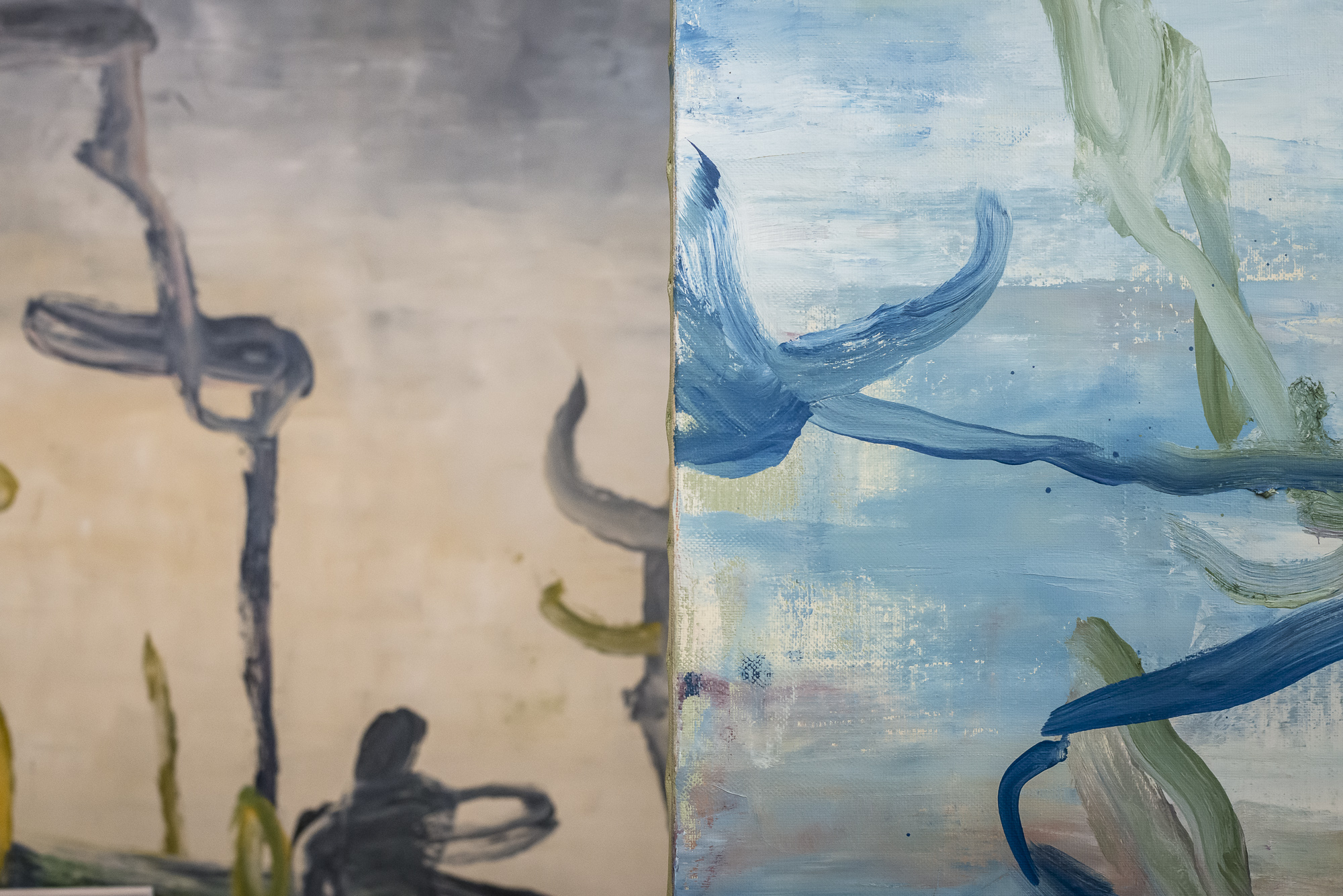 Marco Colazzo ha fatto della pittura il suo media espressivo privilegiato. Principalmente a olio e su tela, con un linguaggio del tutto personale e autonomo, attraverso una decisa riduzione cromatica, pone in continuo dialogo astrazione e figurazione, onirico e realtà, finzione e memoria.