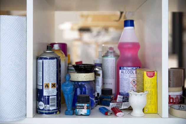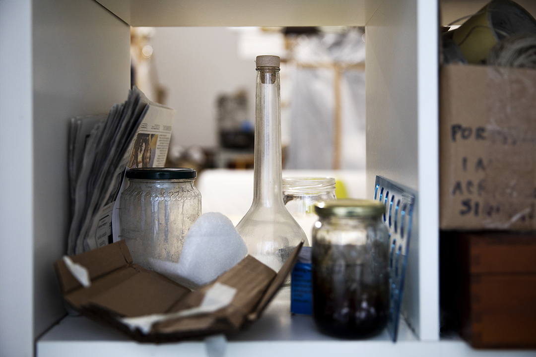 «Il mio primo studio si trovava a Montesacro; ci sono entrata alla fine degli anni ‘90 e lì sono rimasta per vent’anni. Era uno spazio molto grande e, nel corso degli anni, l’ho condiviso con altri artisti. È stato un vero laboratorio pieno di oggetti, barattoli, colori, rotoli di carta, stoffe, resine, attrezzature… lì ho potuto ideare e realizzare lavori installativi molto impegnativi, grandi disegni, grandi sculture. Sicuramente è stato un luogo di incontri, di scambi con molti artisti, galleristi e curatori…per questo gli sono rimasta sentimentalmente legata. Da poco, mi sono trasferita al Pigneto, in uno spazio più piccolo e sicuramente più intimo.»
