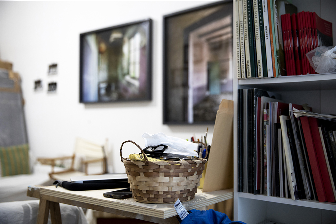 «Un luogo di riflessione. Ho sempre lavorato in solitudine, in un clima di assoluta concentrazione. Lo studio è un luogo dove, quando entro, devo ri-trovare i miei affetti. Da sempre dedico una parete dello spazio solo agli appunti: una piccola foto appena stampata, una fotocopia, un post-it, una frase, un disegno, la piantina di una galleria, una cartolina, la bozza di un progetto, un pezzo di calendario. Tutti questi frammenti li lascio lì a sedimentare, appesi al muro per mesi, persino per anni, e poi, a un certo punto, si ricompongono da soli e, come per magia, arriva l’idea per una nuova ricerca, per un nuovo lavoro.»