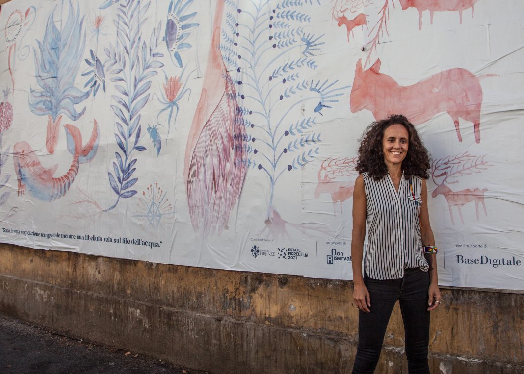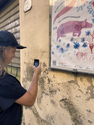 Una serie di fiere e di bestie, elementi naturali e antropomorfi, immagini legate al simbolismo della natura, alcune direttamente riferite all’opera di Dante Alighieri. Questo il repertorio visivo che ha ispirato la creazione, per mano dell’artista, di diversi manifesti coi toni del rosso e del blu, a evocare il sacro e il mitologico. In questo modo, “Incubazioni Oniriche” si è inoltrato nelle vie della città, dove tutti hanno potuto interfacciarsi con queste visioni fantastiche. Suggestionati – anche inconsciamente – da queste immagini sui manifesti, i passanti potevano scoprire come queste opere fossero state realizzate inquadrando un qr code che dava l’accesso a video e foto. Laura Cionci è solita impiegare pratiche relazionali nel suo lavoro, dando forma a nuovi processi creativi legati alle energie delle persone ma anche al territorio. L’artista ce ne ha parlato in maniera approfondita in un’intervista, a partire dal progetto “Incubazioni Oniriche”, che porterà in diversi luoghi del mondo.