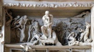 Dall’apertura del percorso espositivo, varcata la copia in gesso della monumentale Porta dell’Inferno di Auguste Rodin, alla quale lo scultore lavorò per trent’anni fino alla sua morte (1880-1917), sala dopo sala si vive in un crescendo emotivo, in cui lo spettatore si avventura dentro l’universo infernale nel regno delle passioni profonde dell’uomo in un buio minaccioso nell’iconografia di una cantica di straordinaria potenza visiva, fino alla decima sala, dove “uscimmo a riveder le stelle”.