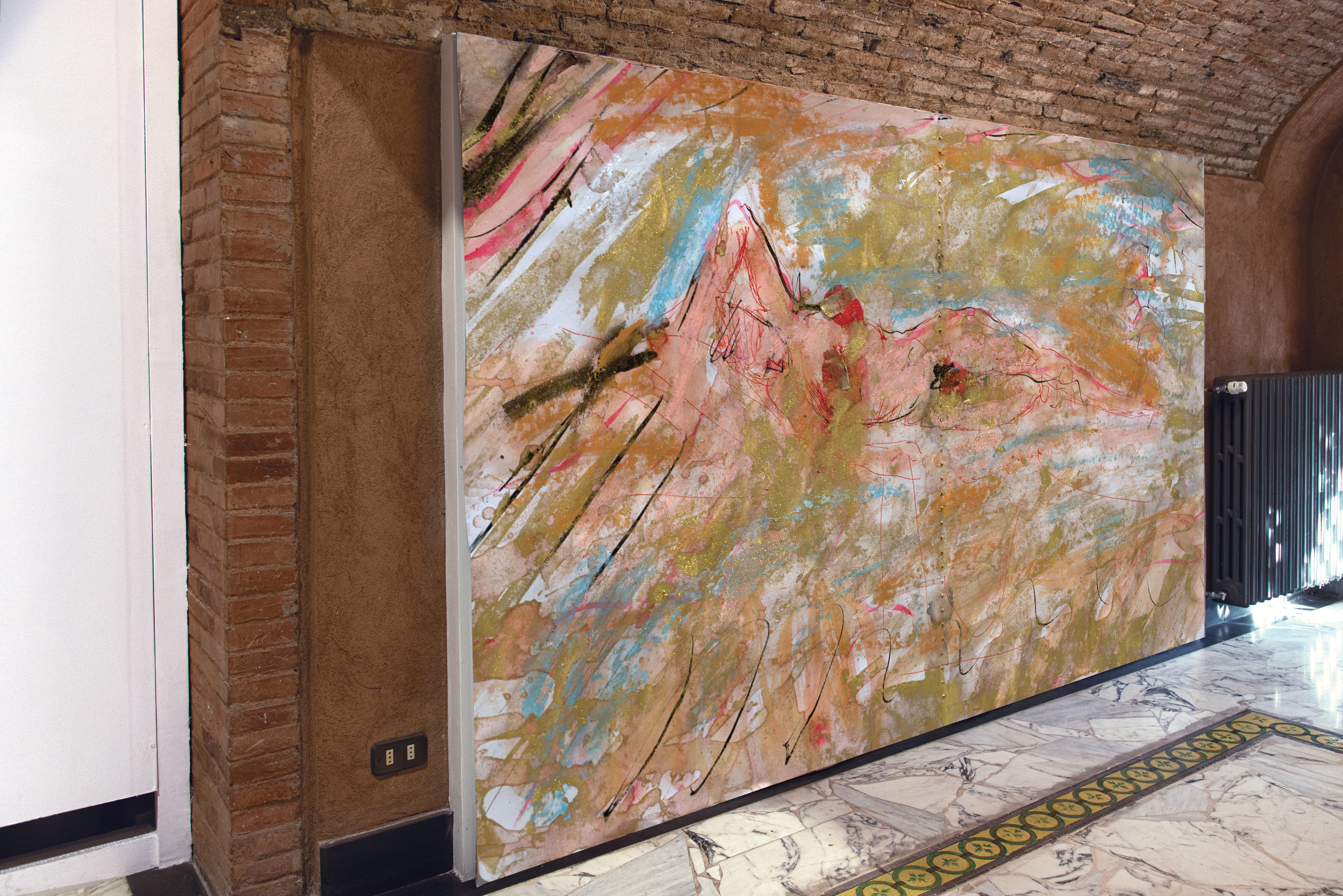 «Intensa. Non dipingo semplicemente, ma recito, parlo, mi agito, danzo e sbatto contro tela, sempre. La mia pittura è performativa e, a fine seduta, mi sento esausto».