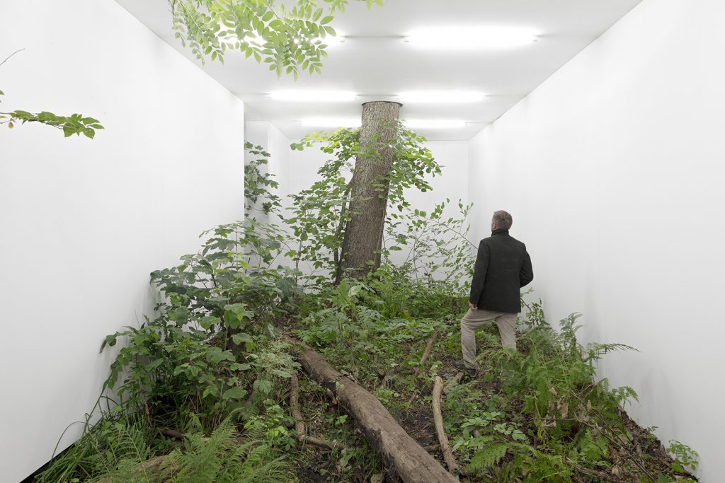 Anzichè portare la natura in una galleria, l’artista ha infatti scelto di portare una galleria nella natura, costruendola in base alle “opere” esposte e al percorso da lui pensato: una galleria sviluppata a partire dal suo contenuto. E le opere esposte sono veri e propri frammenti di paesaggio, selezionati dall’artista e nitidamente isolati dai 180 metri quadri di ambienti in stile white cube da lui costruiti.
